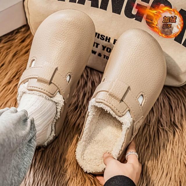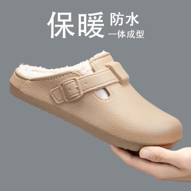 勃肯鞋女冬季加絨加厚保暖平底包頭拖鞋EVA踩屎感防滑防臭大尺碼厚底拖鞋戶外防水復古寬楦外出穆勒鞋學生休閒懶人鞋一腳蹬涼鞋