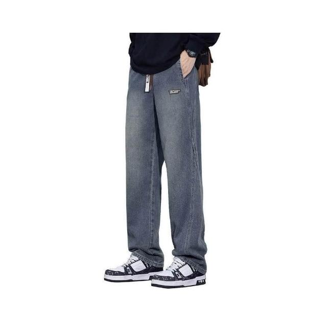 牛仔褲秋季新品美式高街復古牛仔褲高品質舒適百搭闊腿牛仔長褲時尚寬松直筒牛仔褲直筒運動男防風保暖褲闊腿寬鬆運動褲工裝褲低腰