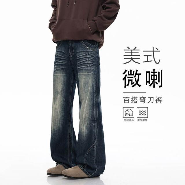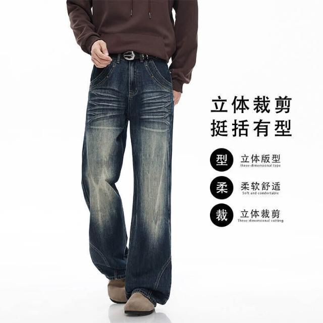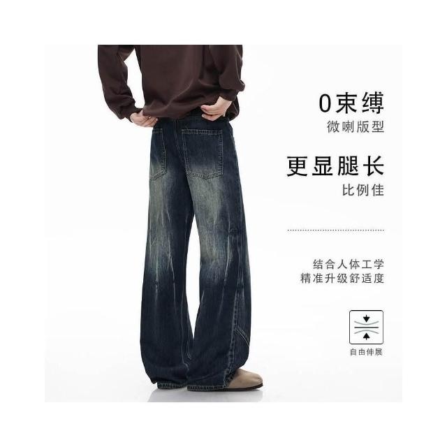 休閑褲男牛仔褲美式復古水洗男女直筒寬松彎刀闊腿情侶褲潮牌痞帥高級感潮流百搭時尚長褲寬鬆運動褲工裝褲低腰水洗機能寬褲大尺碼