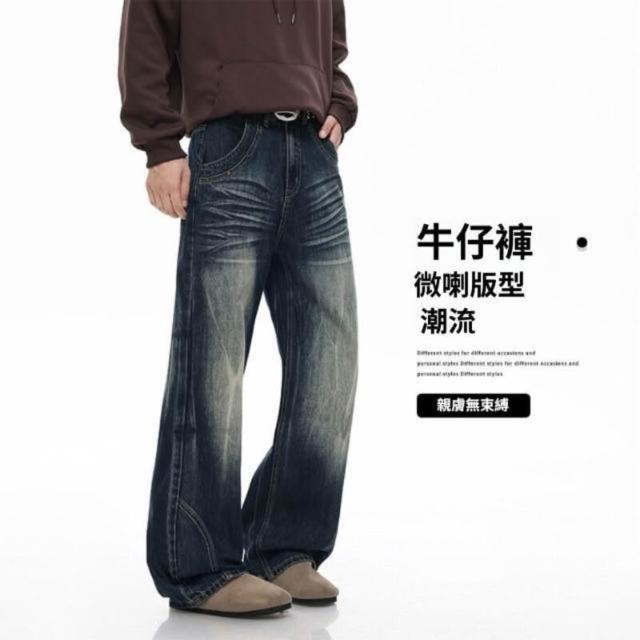 休閑褲男牛仔褲美式復古水洗男女直筒寬松彎刀闊腿情侶褲潮牌痞帥高級感潮流百搭時尚長褲寬鬆運動褲工裝褲低腰水洗機能寬褲大尺碼