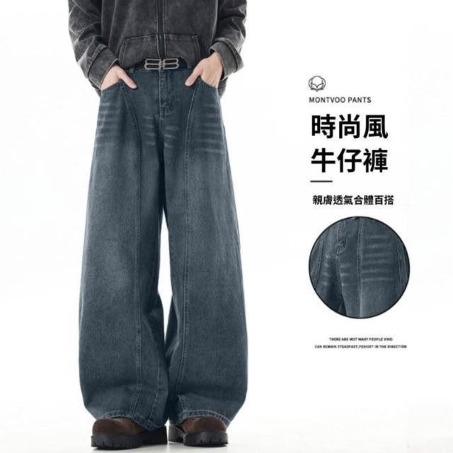 牛仔褲寬松直筒潮牌男女防風保暖褲闊腿工作褲寬鬆運動褲工裝褲低腰水洗機能寬褲大尺碼薄款休閒褲耐磨登山褲春秋冬垂感韓國彎刀褲