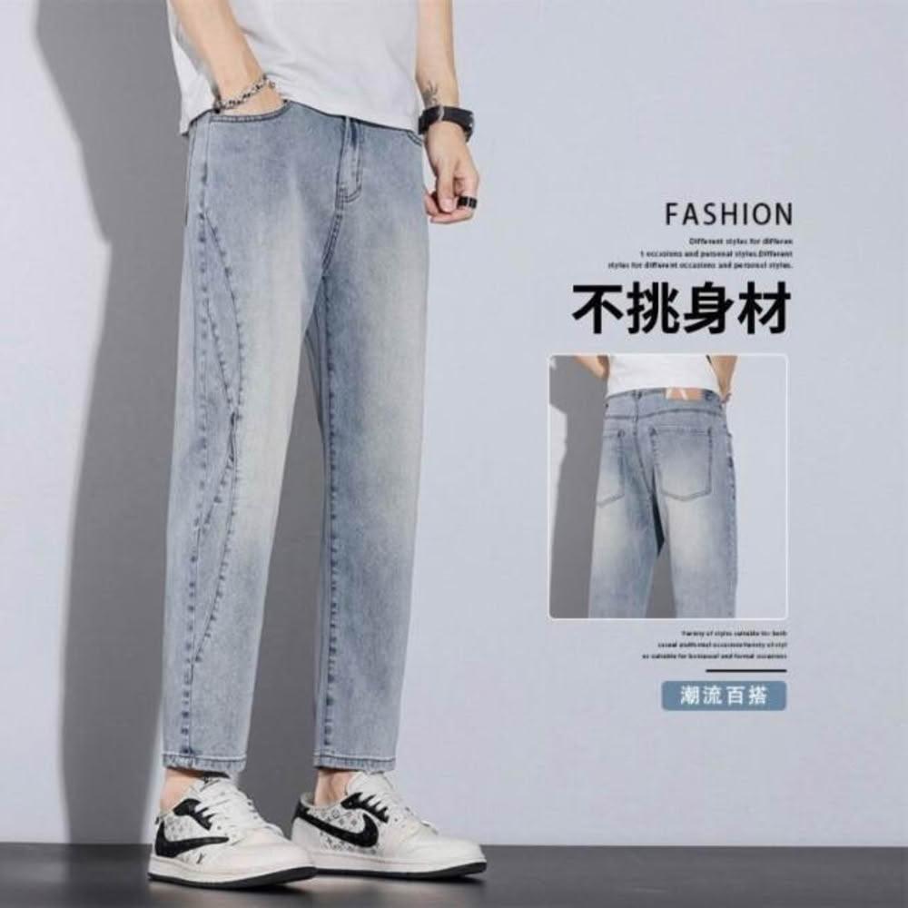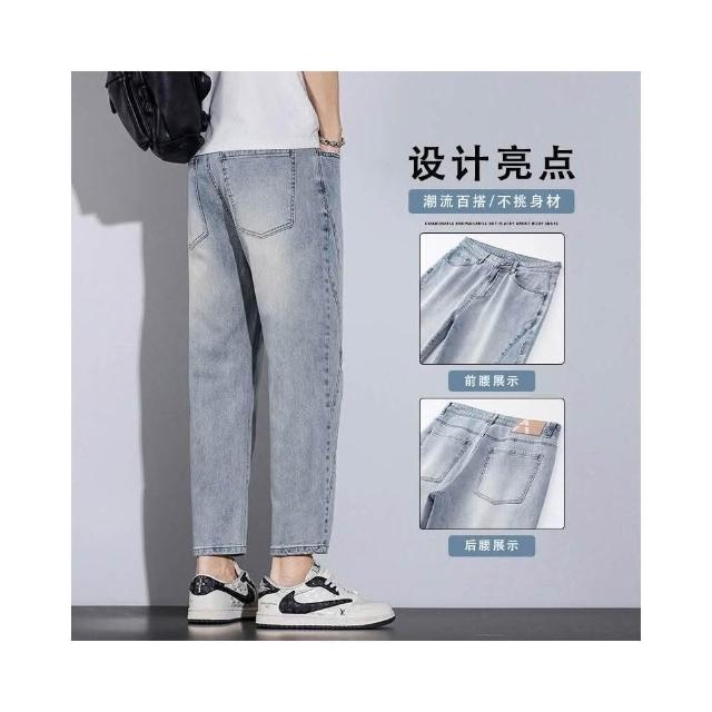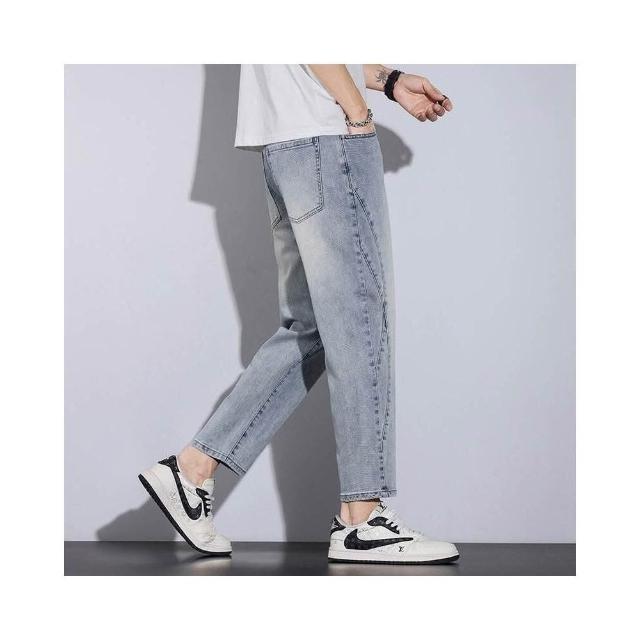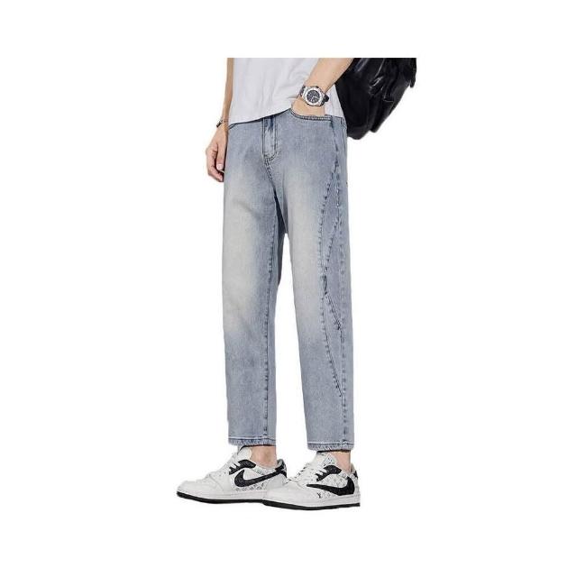 牛仔褲男高端復古直筒九分春夏季潮流青少年休閑褲男士個性痞帥潮牌工裝褲防風休閒褲水洗登山褲春秋天彎刀褲男生直筒寬褲夏季薄款