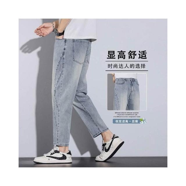 牛仔褲男高端復古直筒九分春夏季潮流青少年休閑褲男士個性痞帥潮牌工裝褲防風休閒褲水洗登山褲春秋天彎刀褲男生直筒寬褲夏季薄款