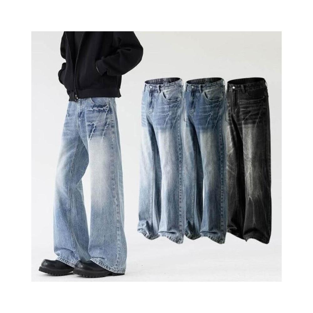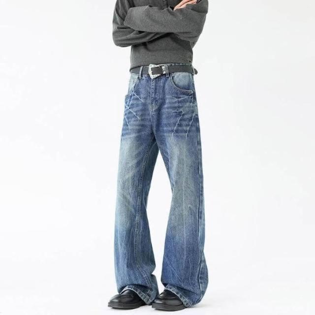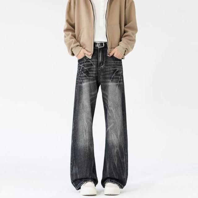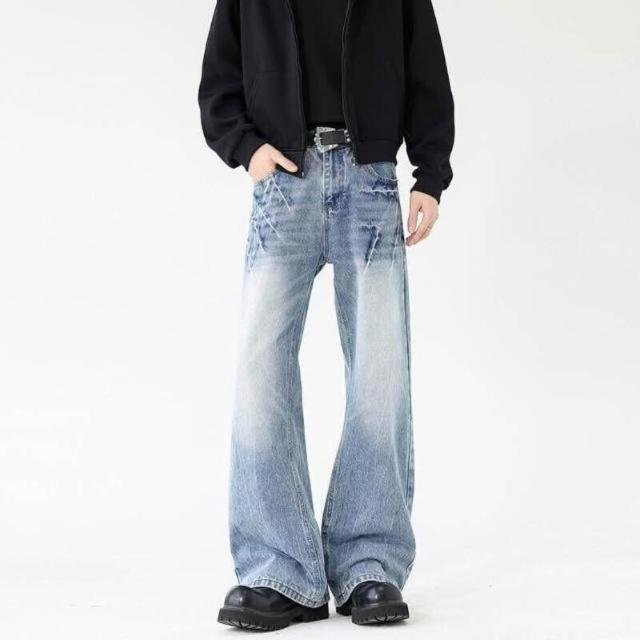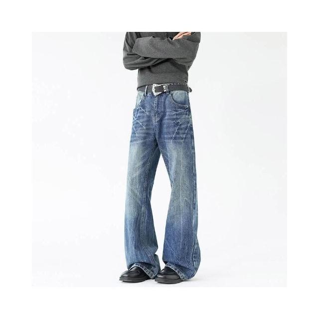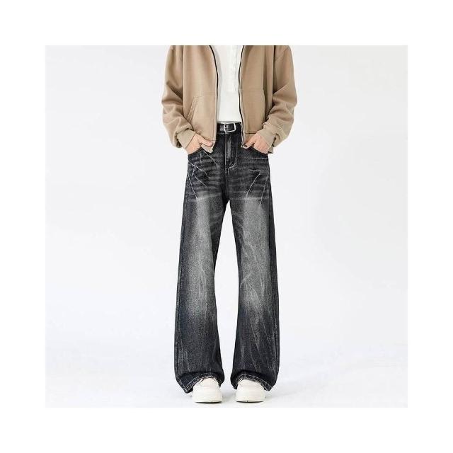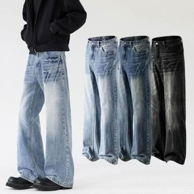 牛仔褲重磅美式水洗復古裂紋貓須微喇男女高街痞帥工裝褲低腰水洗機能寬褲大尺碼薄款休閒褲耐磨登山褲春秋冬垂感韓國彎刀褲運動褲