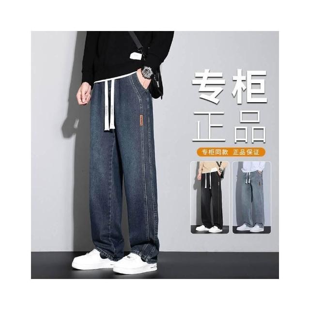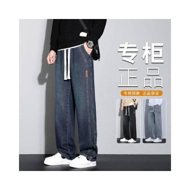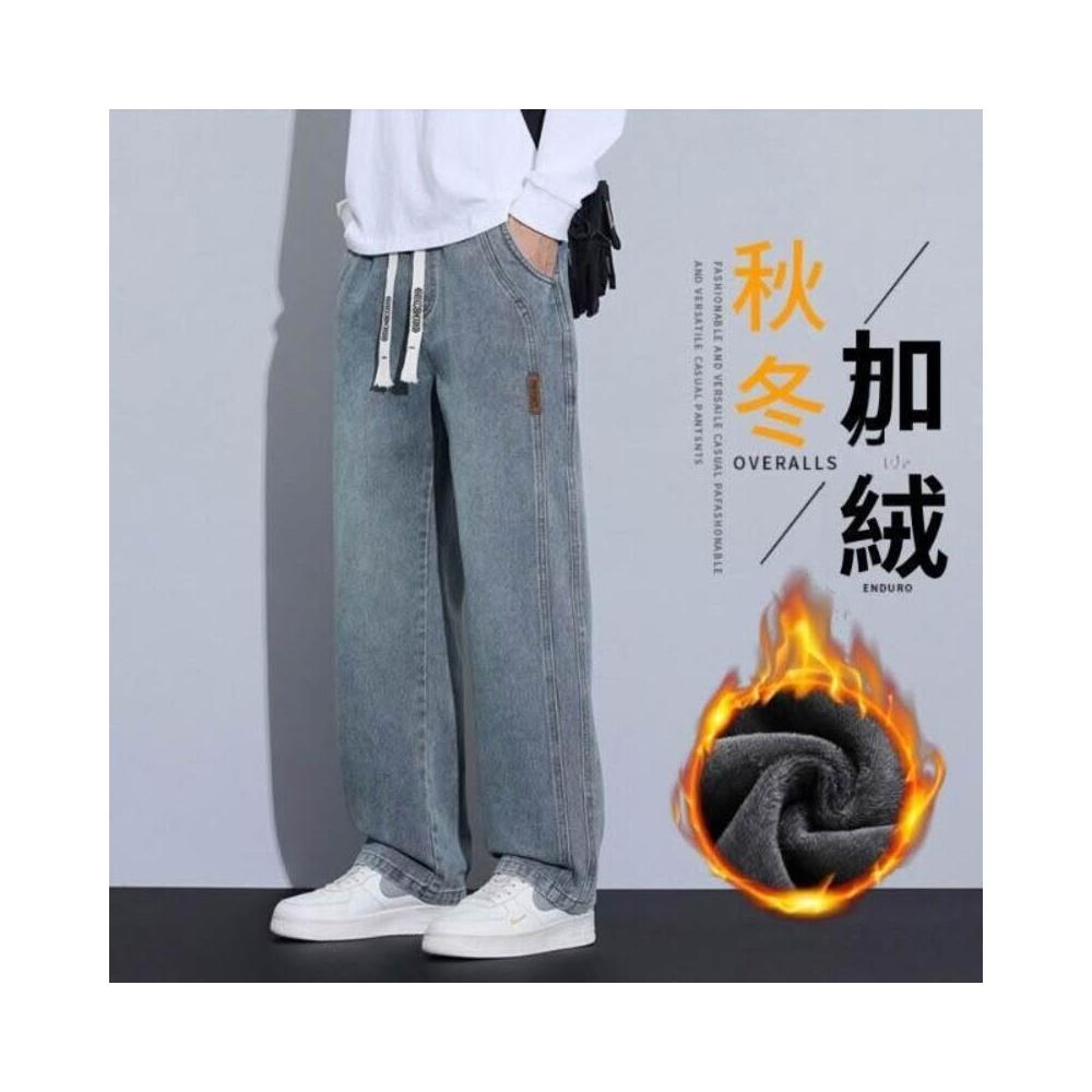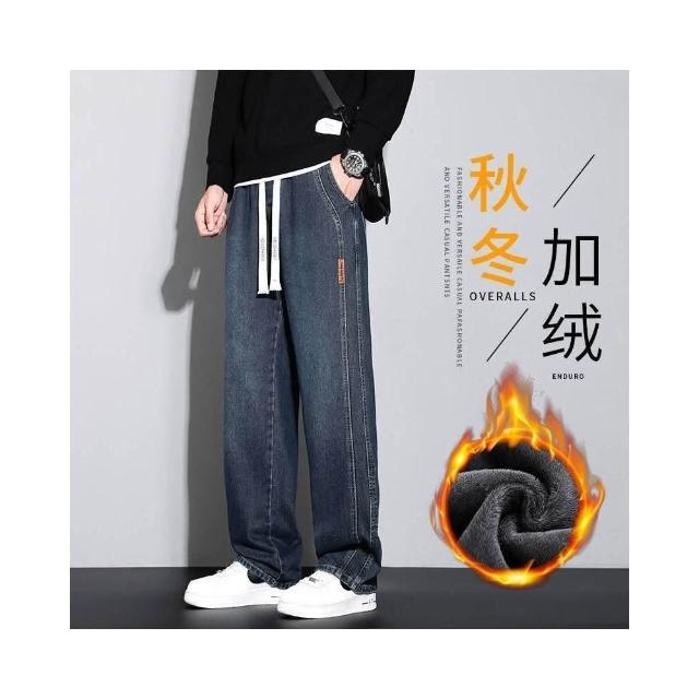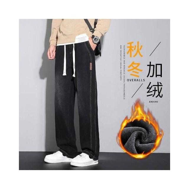 牛仔褲復古男款秋冬加絨直筒寬松潮牌闊腿美式高街百搭休閑長褲子牛仔褲男冬季彈力美式柔軟舒適爸爸保暖工作褲彈性防風運動長褲