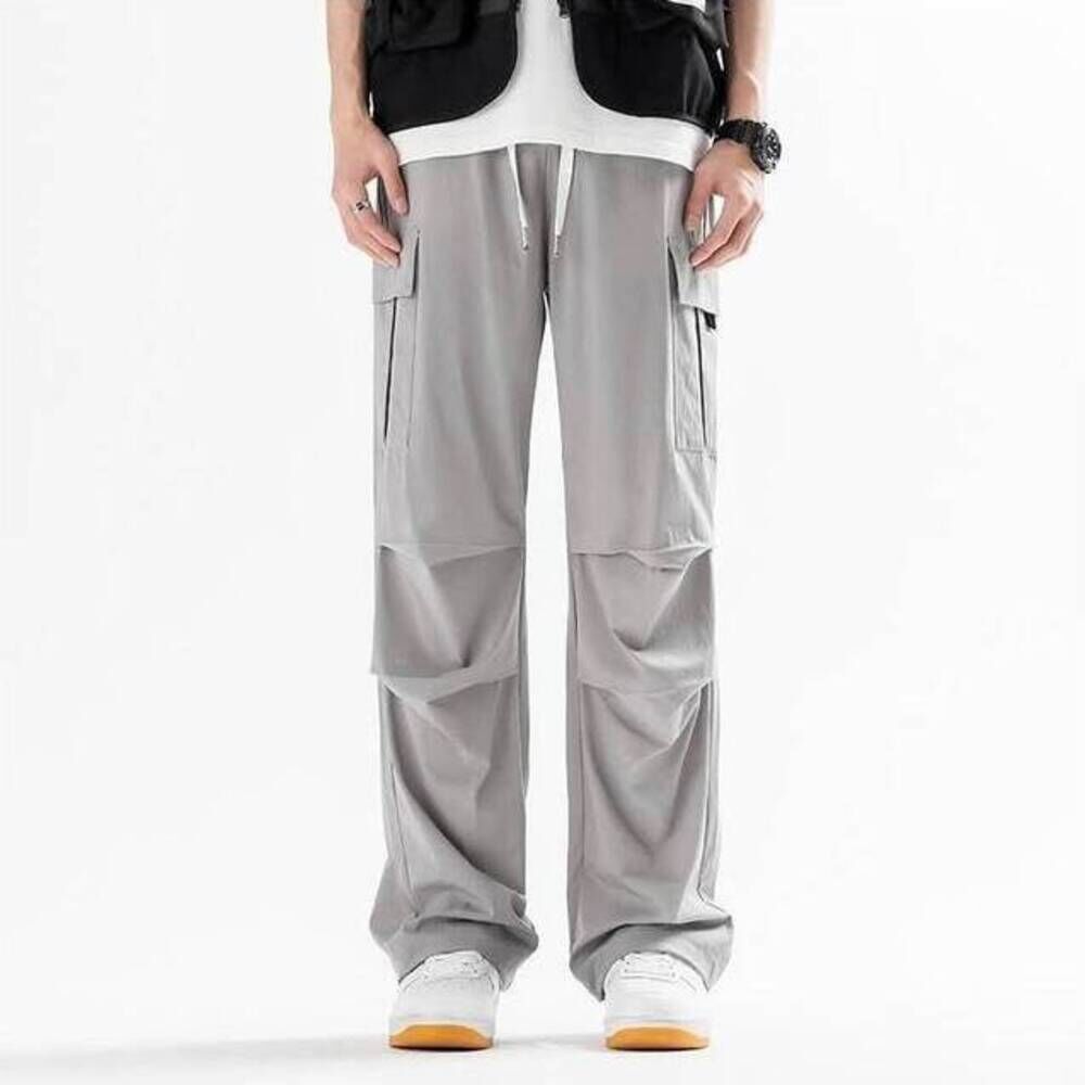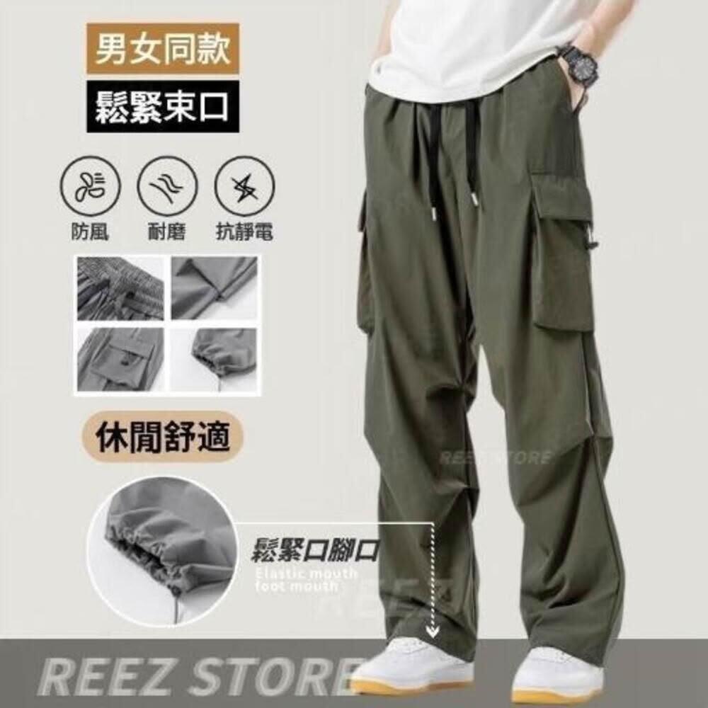 S-5XL 夏天男女同款涼感工作褲防潑水長褲降落傘工裝輕薄透氣工裝褲男排汗冰絲直筒工作褲夏季工裝褲寬鬆傘兵褲直筒工裝長褲