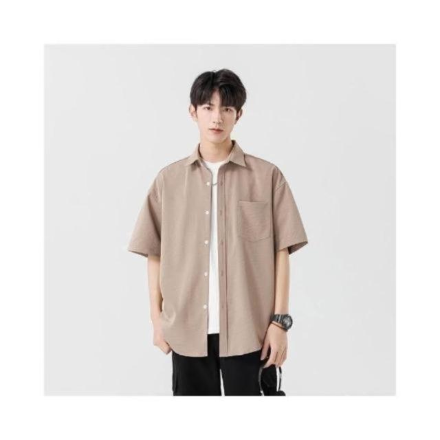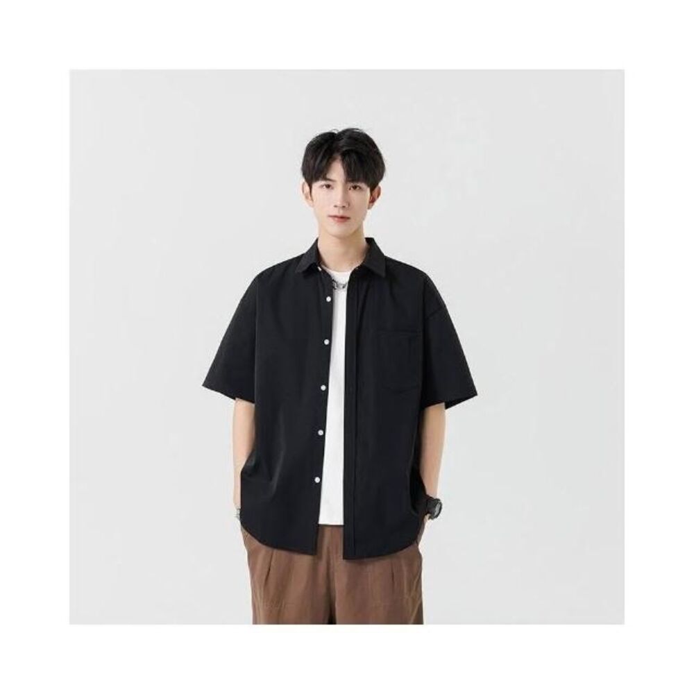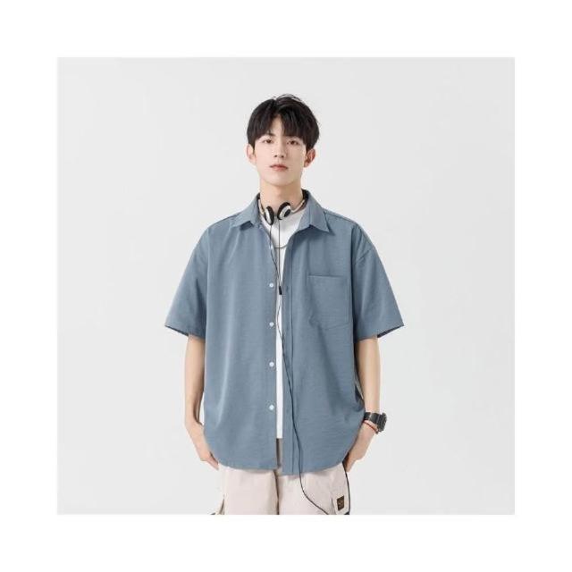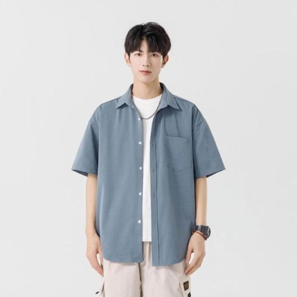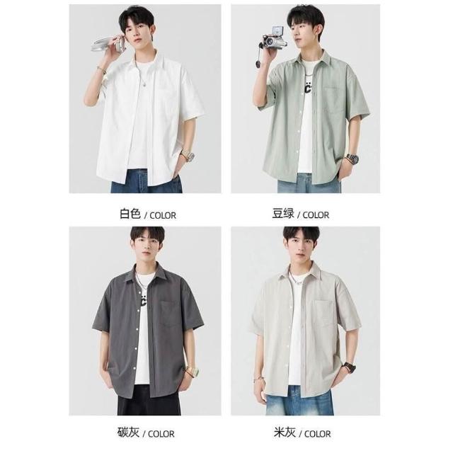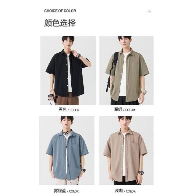 襯衫男輕薄透氣寬鬆休閒通勤耐磨工作短袖襯衫外套彈性大尺碼吸濕排汗免燙防皺素色日系翻領口袋外搭襯衫夏天開衫半袖落肩上衣T恤
