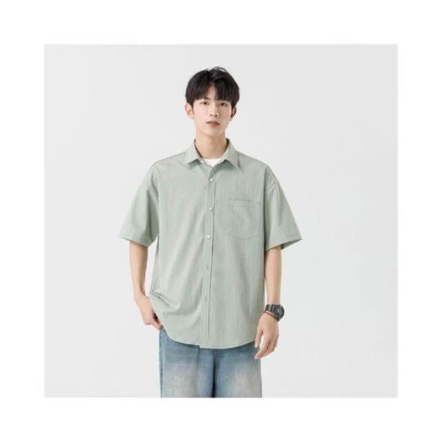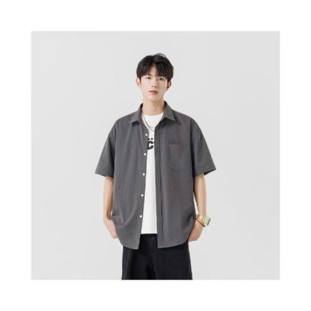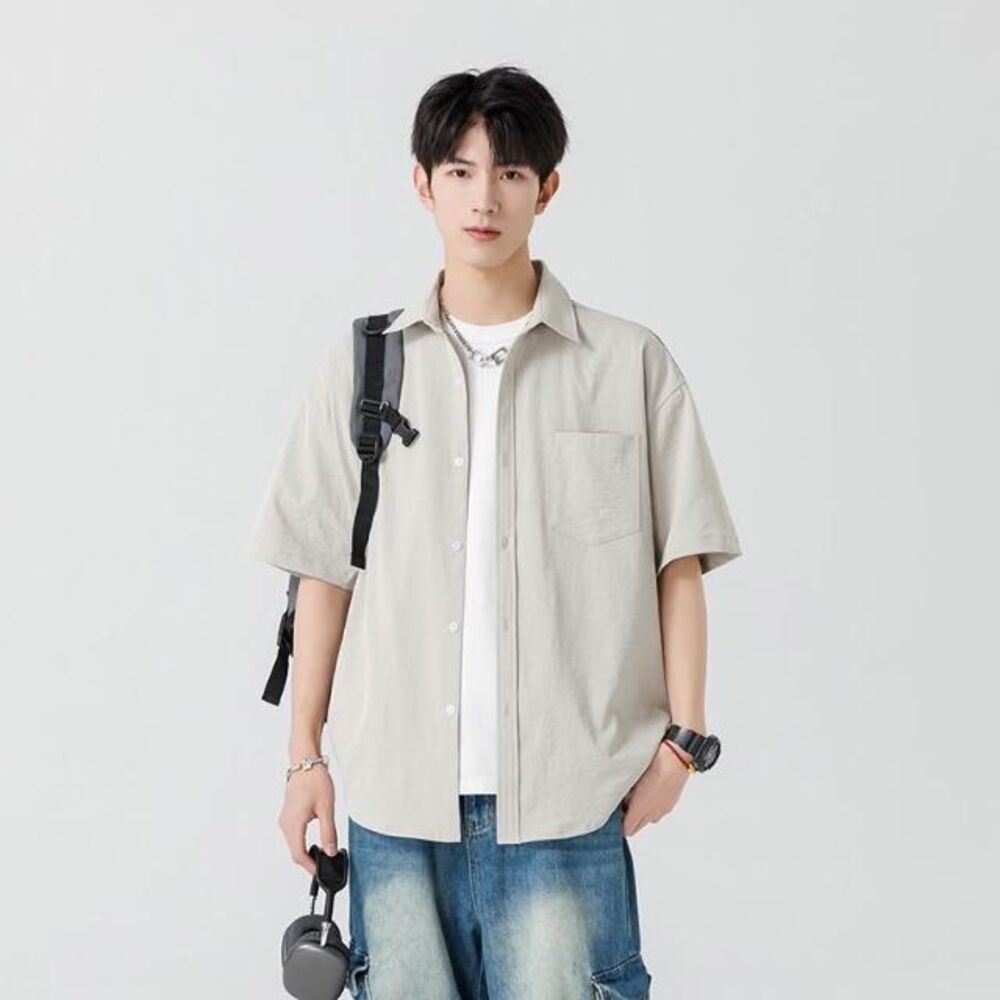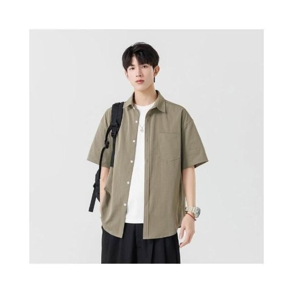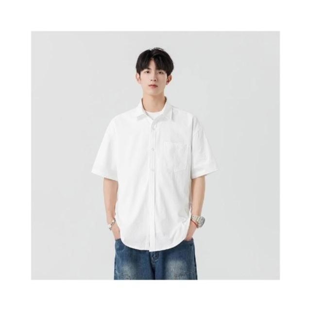 襯衫男輕薄透氣寬鬆休閒通勤耐磨工作短袖襯衫外套彈性大尺碼吸濕排汗免燙防皺素色日系翻領口袋外搭襯衫夏天開衫半袖落肩上衣T恤