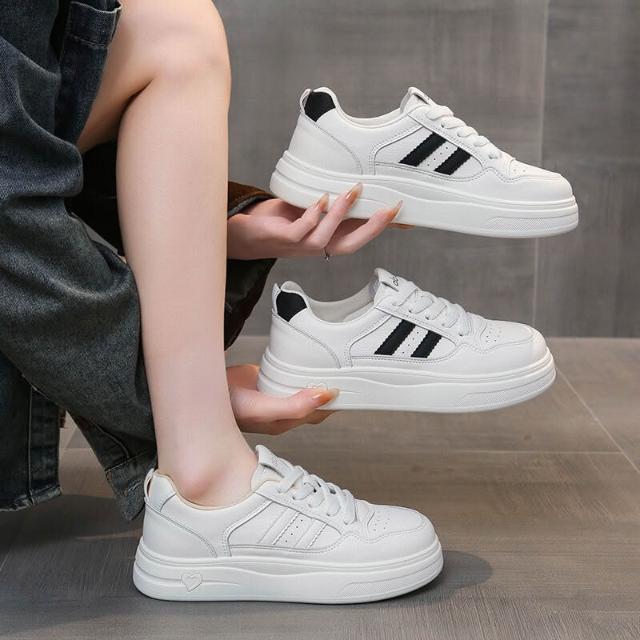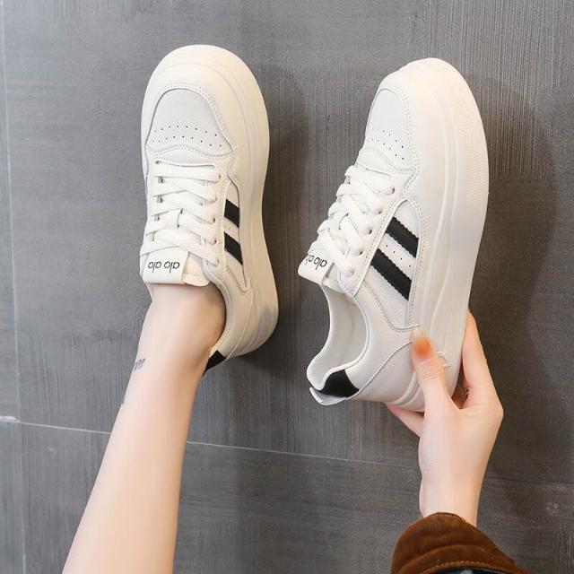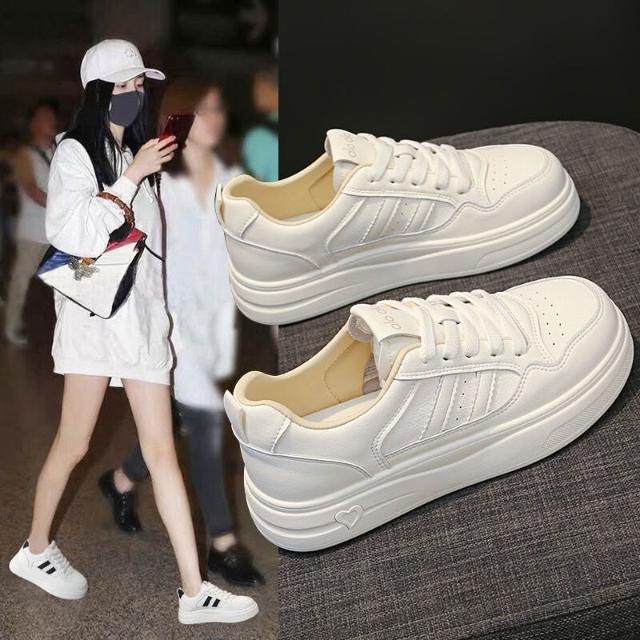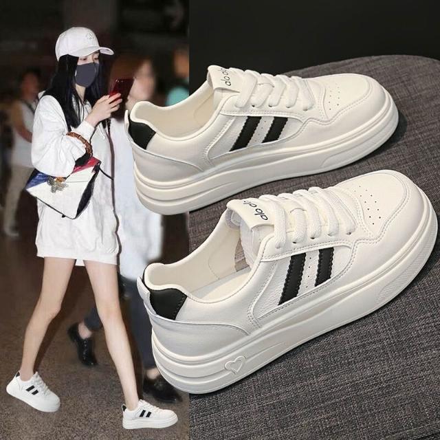 小白鞋女學生時尚簡約百搭平底增高休閒鞋防水止滑厚底運動鞋輕量透氣戶外登山鞋白色大尺碼女鞋寬楦舒適緩震慢跑鞋板鞋耐磨滑板鞋