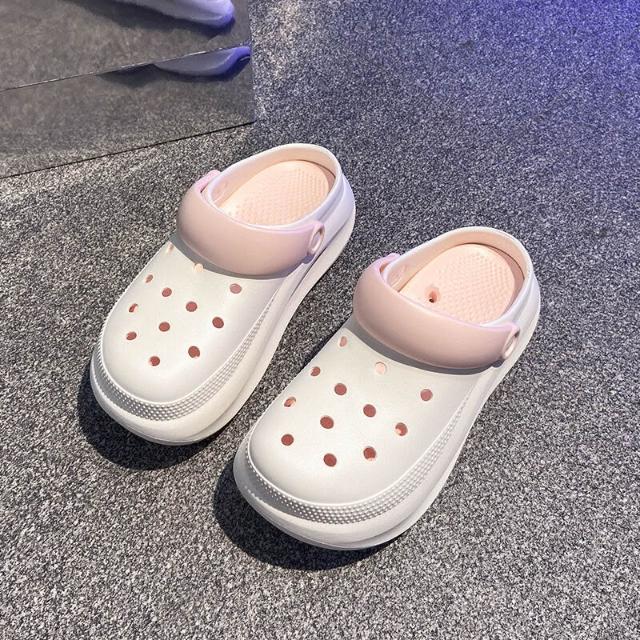 洞洞鞋女夏季EVA軟底舒適寬楦包頭拖鞋透氣輕量運動涼鞋防滑室內拖鞋增高耐磨厚底涼鞋大尺碼一腳蹬懶人鞋包頭拖鞋護士鞋工作鞋