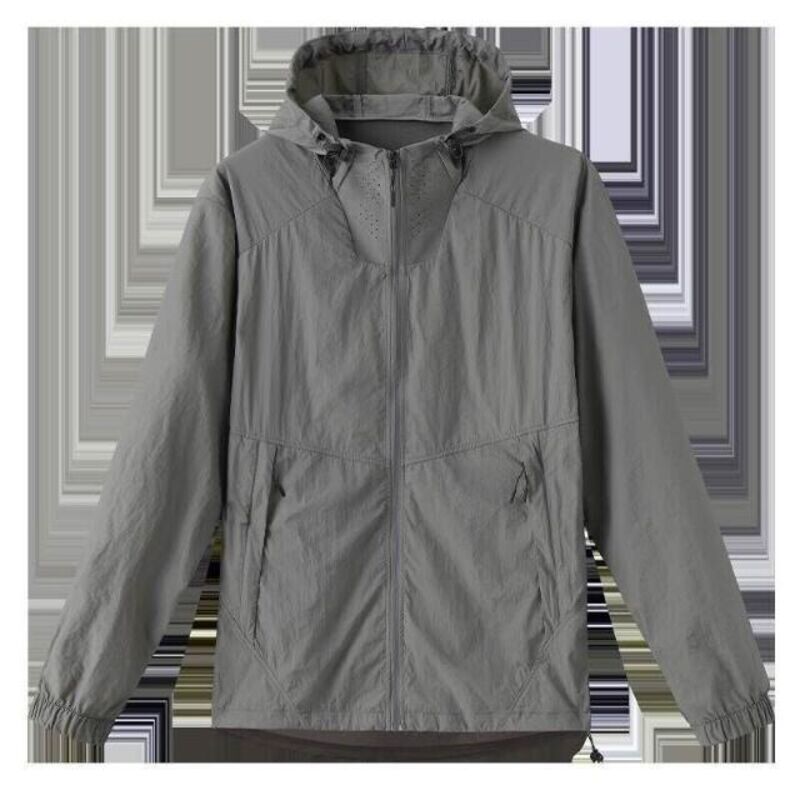 冰絲防曬外套抗 uv 高防護涼感 UPF50 + 防紫外線夏天釣魚遮陽防水透氣防風薄外套男款大尺碼灰色立領軟殼飛行外套 運動休閒服男長袖上衣女款