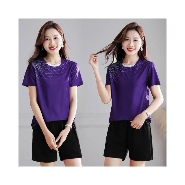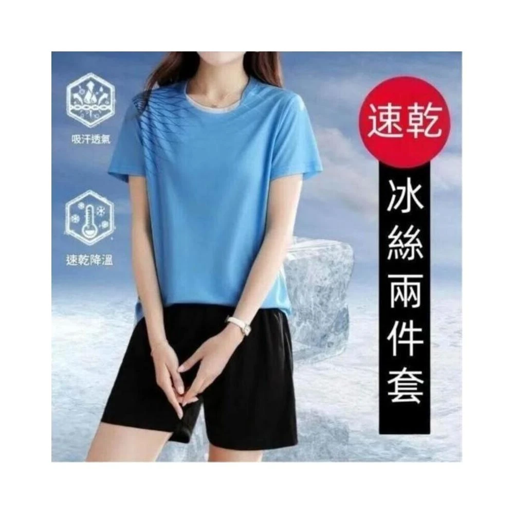 運動套裝速乾衣女休閒套裝休閒運動服女生套裝女運動服運動短袖夏天衣服套裝女運動套裝冰絲兩件套涼感套裝跑步時尚潮流寬鬆運動