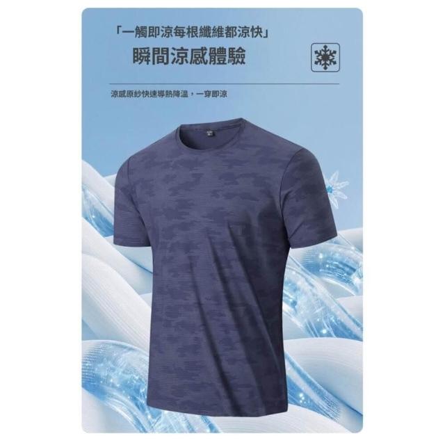 短袖上衣男速乾短袖T恤大尺碼冰絲涼感短袖圓領t恤寬鬆夏季百搭透氣運動上衣戶外跑步登山吸濕排汗彈力休閒上衣男裝印花迷彩t恤