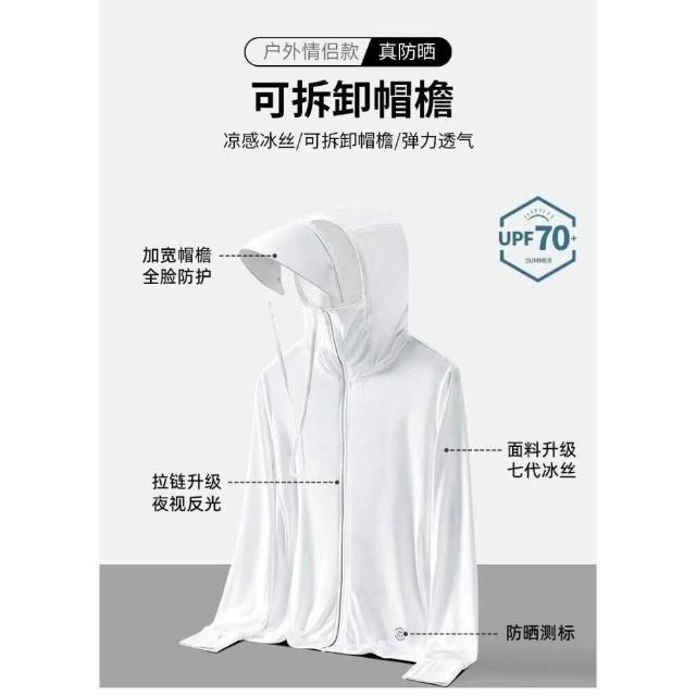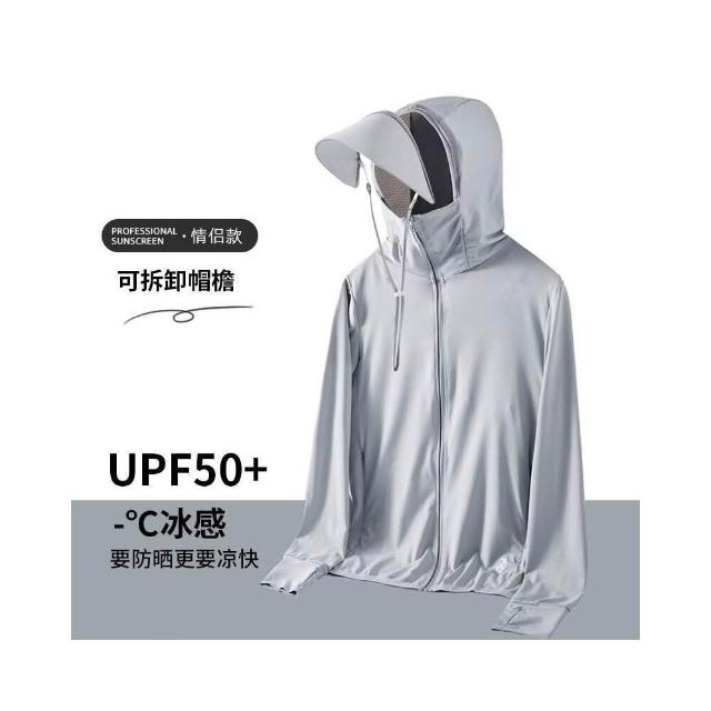 防曬外套男夏天遮陽冰絲涼感防曬衣夏季男生連帽休閒外套輕薄透氣速乾防紫外線涼爽防曬服可拆卸大帽檐戶外騎行釣魚服冰涼運動風衣