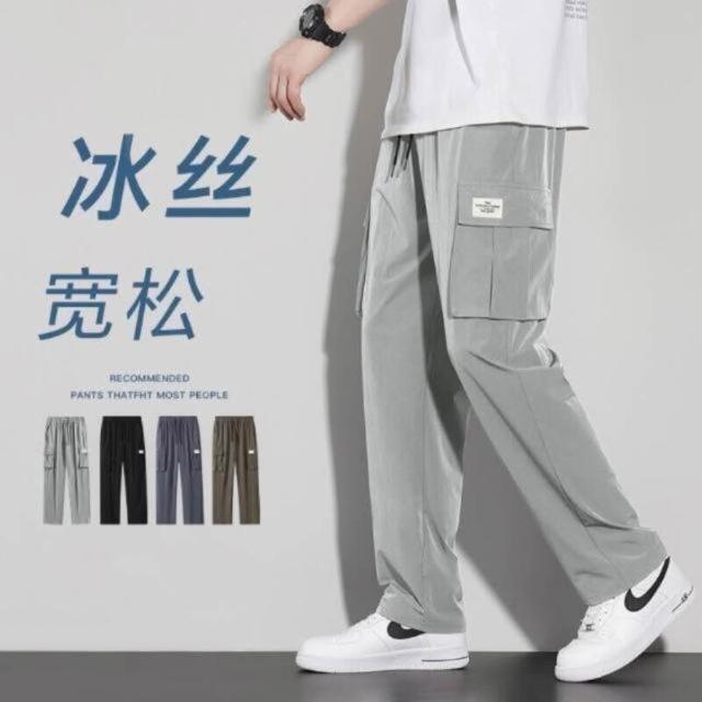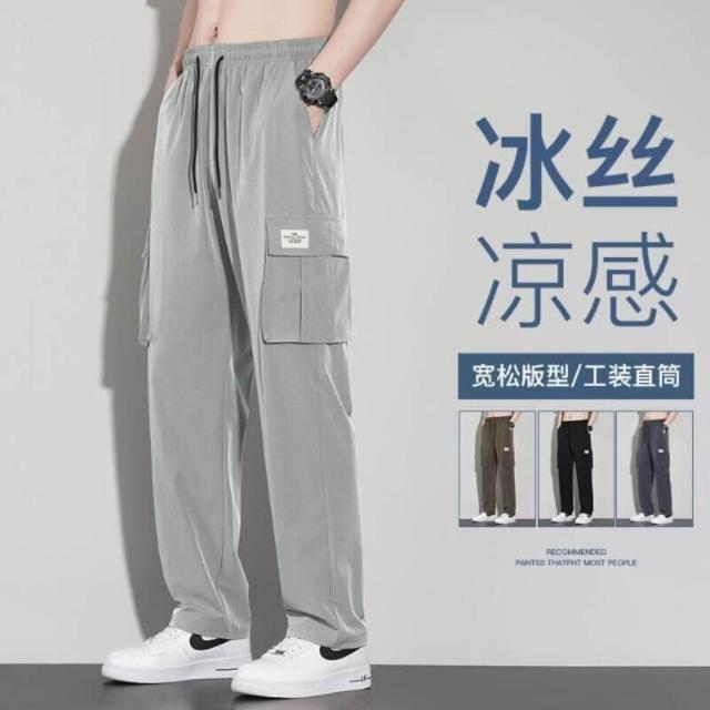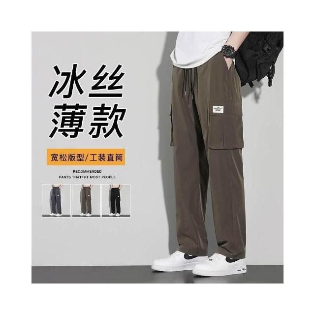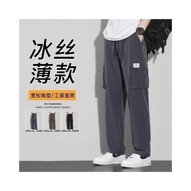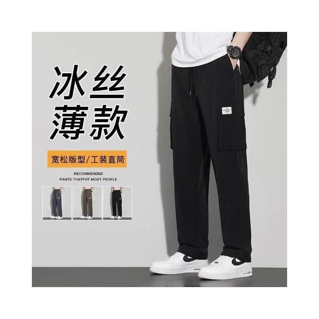 運動褲男夏季大尺碼冰絲彈力直筒運動褲輕薄透氣舒適涼感褲戶外休閒跑步籃球登山騎車速乾排汗長褲男透氣吸濕排汗耐磨工作防曬寬褲