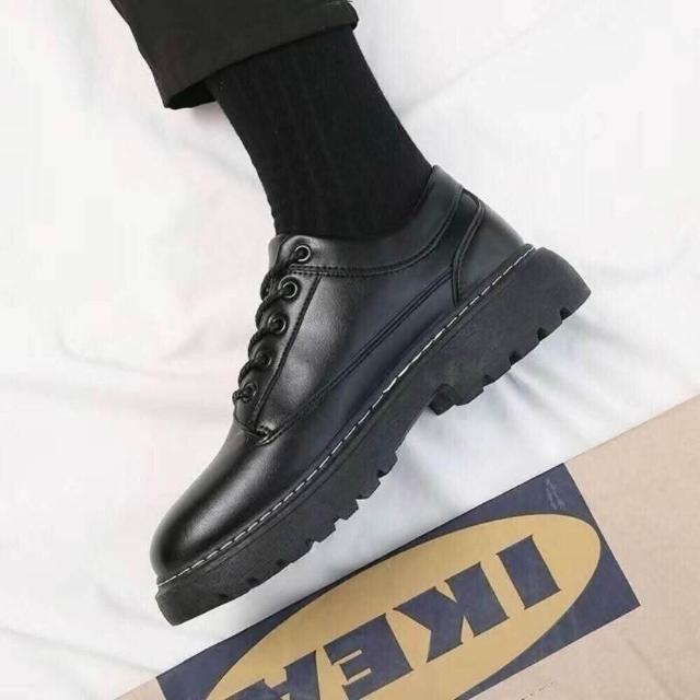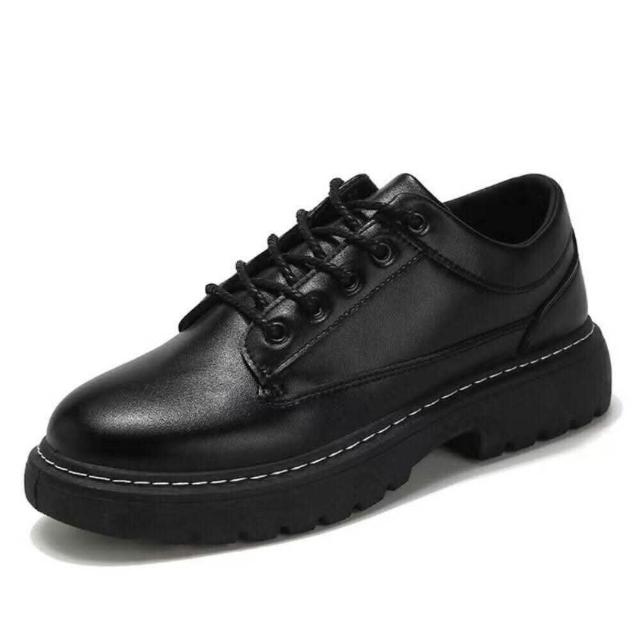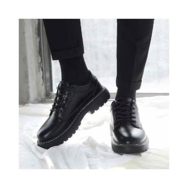 大尺碼 皮鞋男春秋新款黑色透氣英倫風商務正裝大頭潮流低幫馬丁靴厚底休閑皮男鞋休閒皮鞋圓頭寬楦增高輕便平底鞋吸濕透氣一腳蹬鞋跟鞋