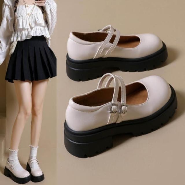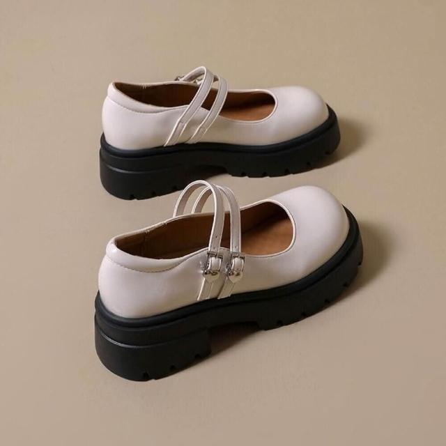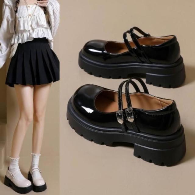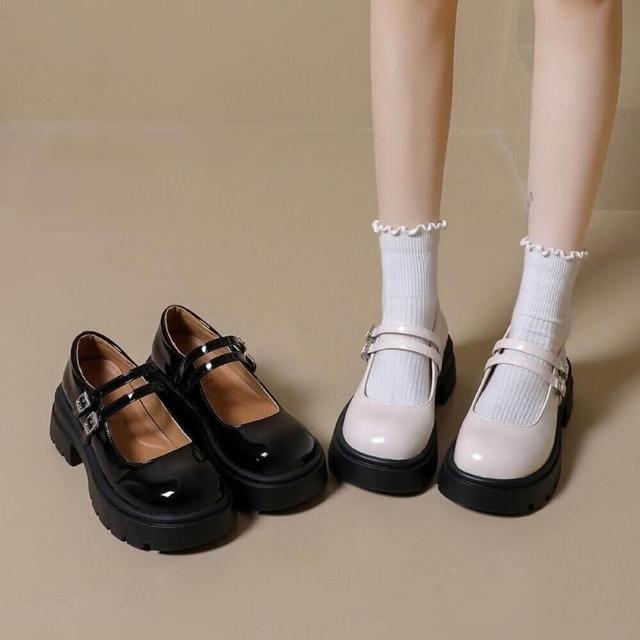 大尺碼 樂福鞋女厚底小皮鞋春季新款英倫學院風亮皮高跟鞋圓頭增高瑪麗珍女鞋防水止滑穆勒鞋久站不累腳瑪莉珍鞋運動休閒鞋透氣耐磨粗跟鞋