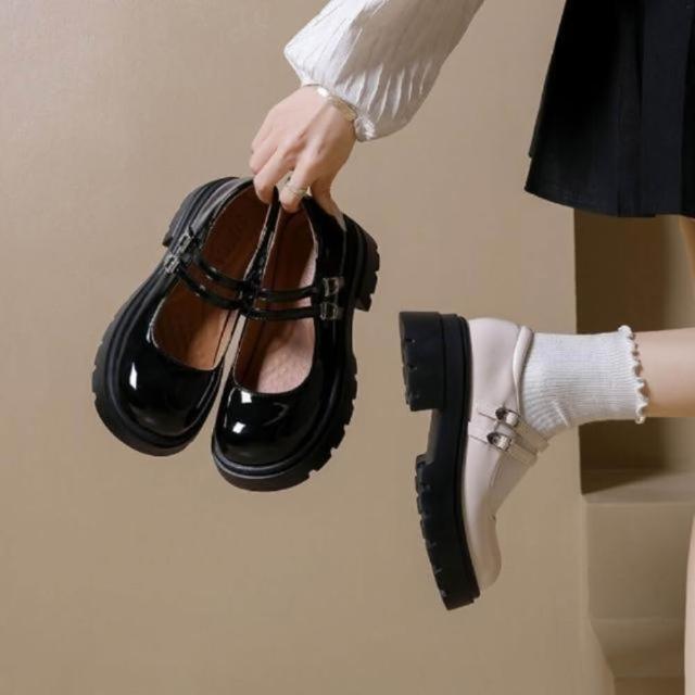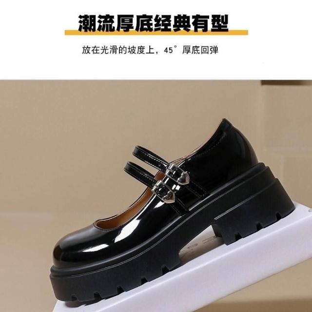 大尺碼 樂福鞋女厚底小皮鞋春季新款英倫學院風亮皮高跟鞋圓頭增高瑪麗珍女鞋防水止滑穆勒鞋久站不累腳瑪莉珍鞋運動休閒鞋透氣耐磨粗跟鞋