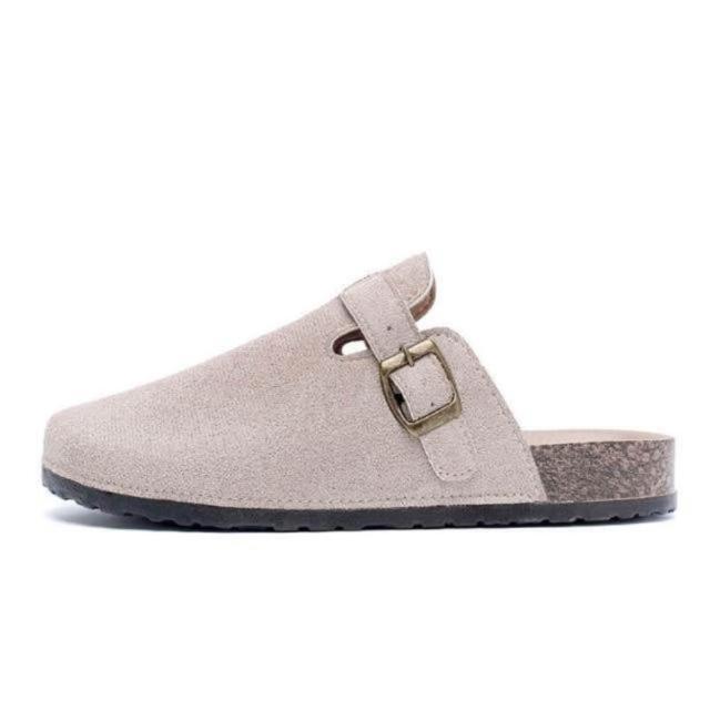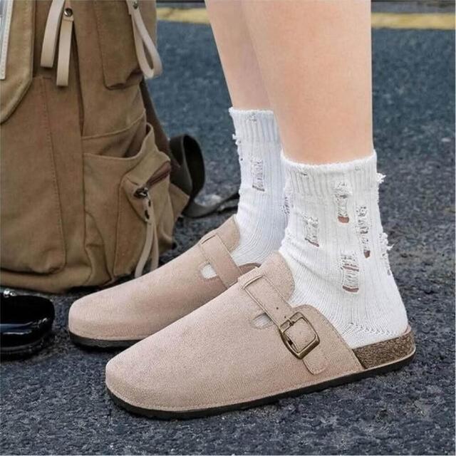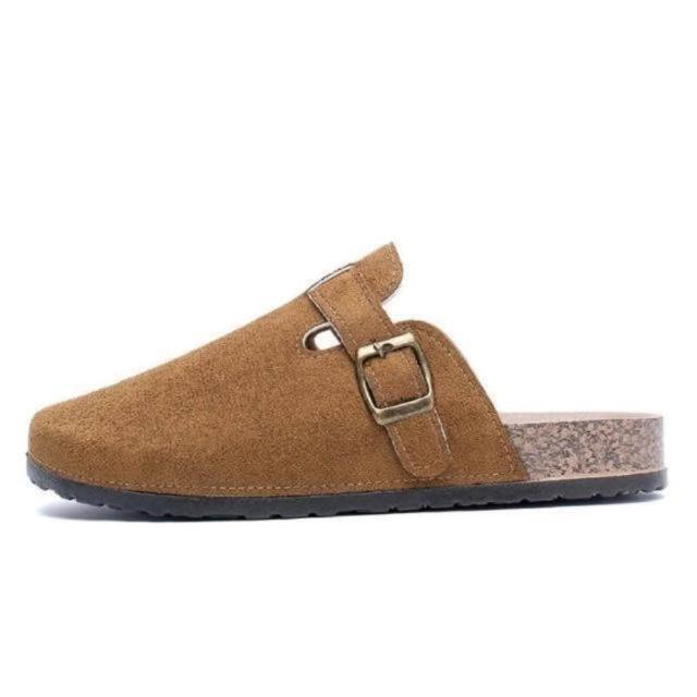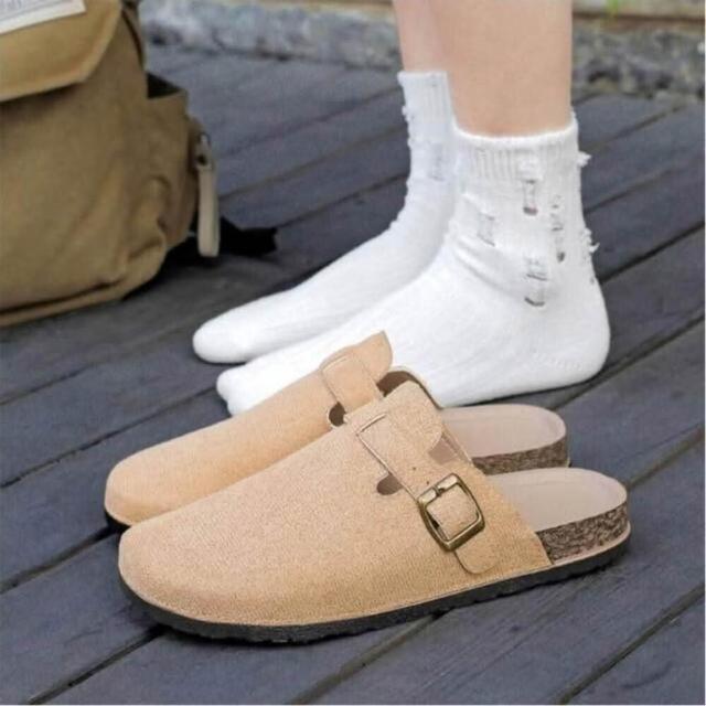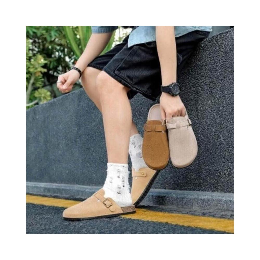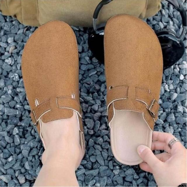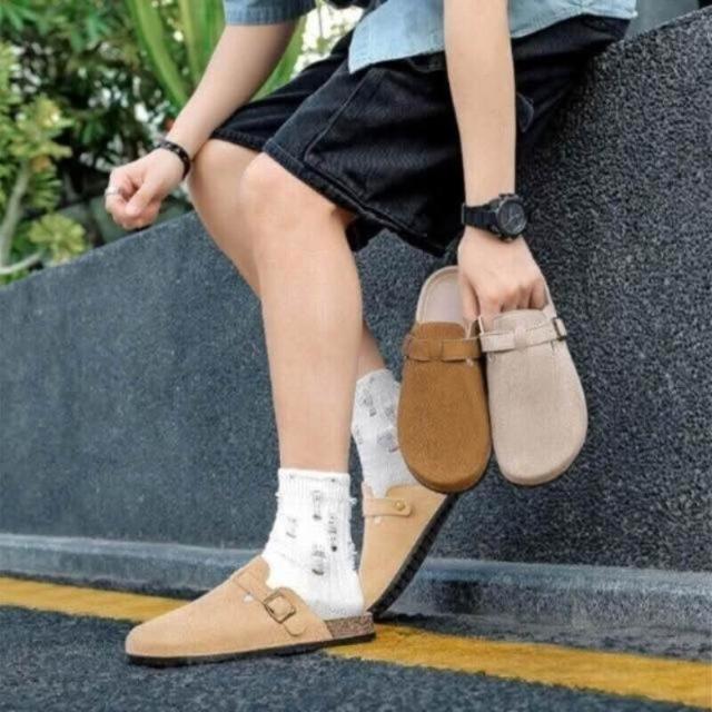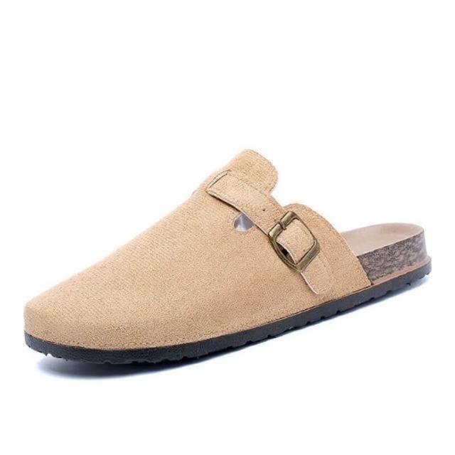 大尺碼懶人鞋男勃肯鞋軟木厚底包頭拖鞋女時尚百搭外出穿平底半包拖鞋女洞洞鞋可開車軟底卡其色棕色涼鞋經典款麂皮不累腳休閒鞋
