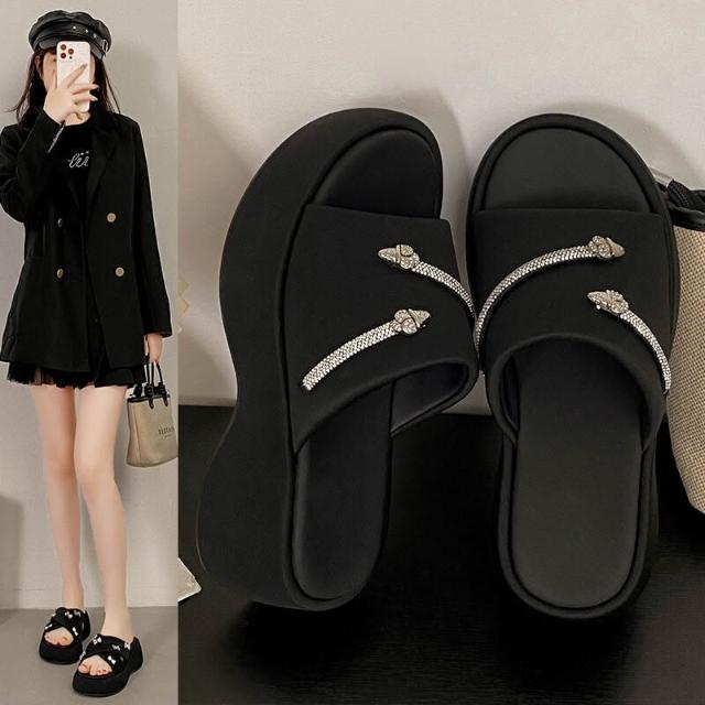 涼鞋女夏季寬楦舒適運動拖鞋增高防滑耐磨厚底涼鞋韓國黑色羅馬鞋輕量透氣涼拖鞋大尺碼一腳蹬懶人鞋娃娃鞋厚底鞋沙灘鞋女涼鞋