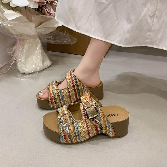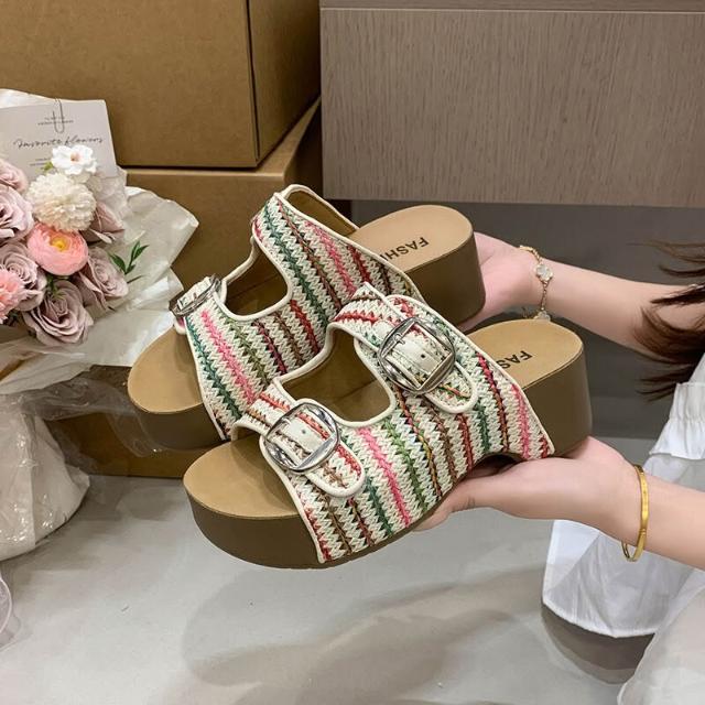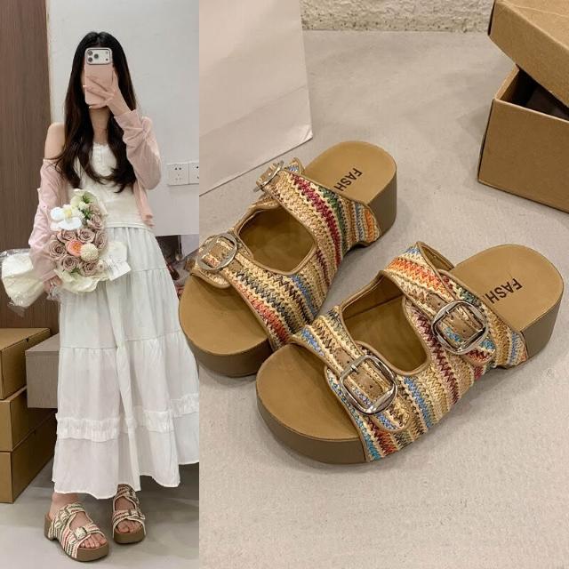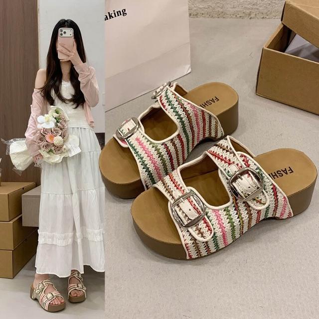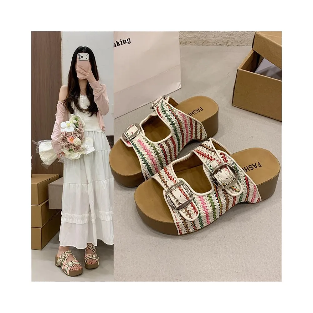 涼鞋女夏季寬楦舒適運動拖鞋增高防滑耐磨厚底涼鞋韓國黑色羅馬鞋輕量透氣涼拖鞋一腳蹬懶人鞋勃肯鞋厚底鞋沙灘鞋女涼鞋編織涼鞋