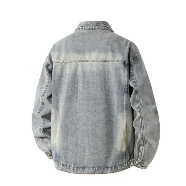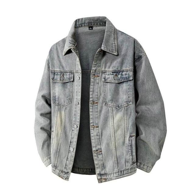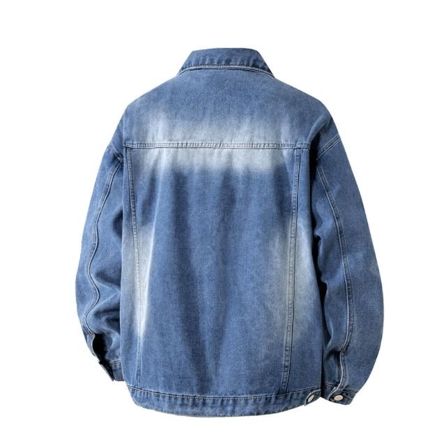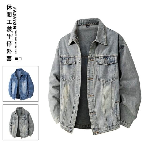 外套男牛仔外套春秋季水洗做舊牛仔夾克新款牛仔上衣防風外套男士牛仔外套男寬松時尚休閒外套透氣輕量薄外套通勤百搭爸爸夾克外套