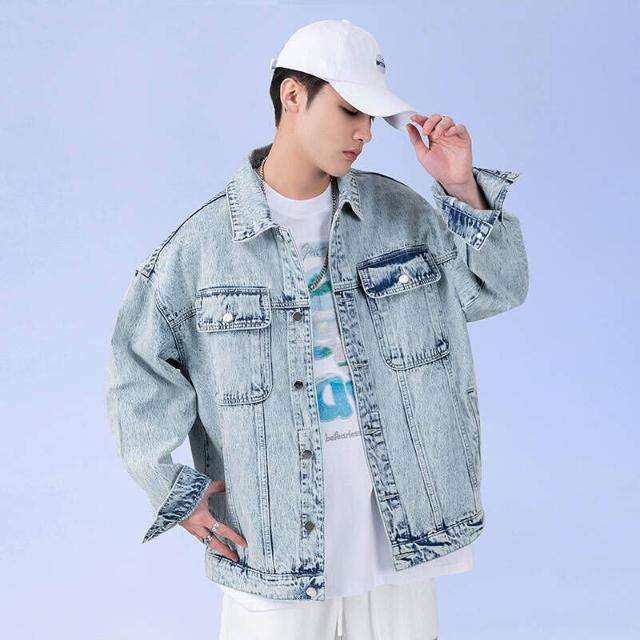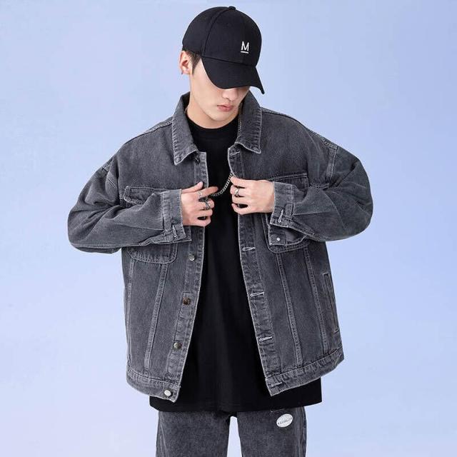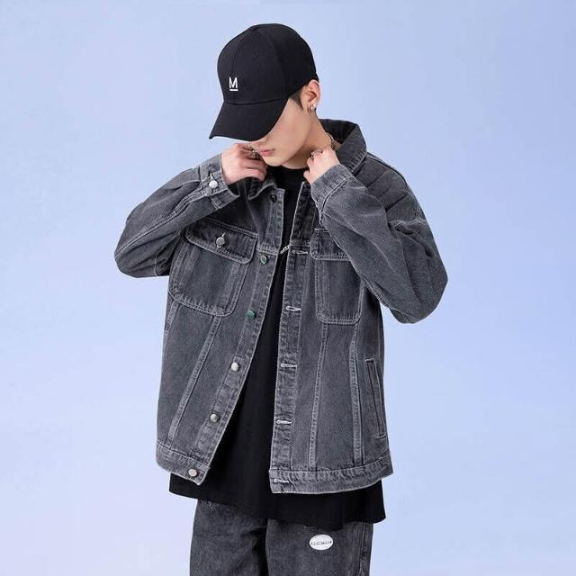 外套男春秋季牛仔外套新款情侶美式復古牛仔上衣男時尚百搭男士寬松大尺碼牛仔外套輕量黑色夾克外套修身耐磨防風外套透氣薄外套