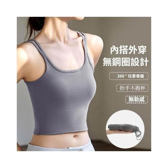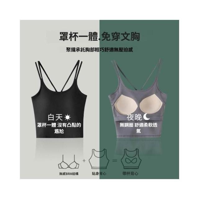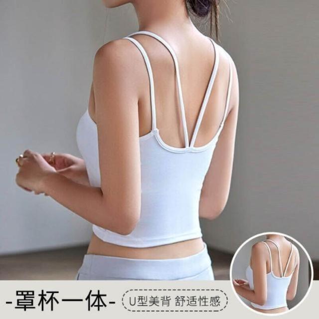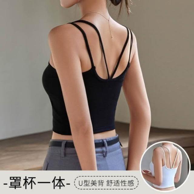 美背吊帶背心女帶胸墊夏季美背文胸一體內衣可外穿上衣女運動打底美背健身上衣聚攏背心式文胸親膚小吊帶無痕涼感薄款透氣健身背心無鋼圈內衣一體式