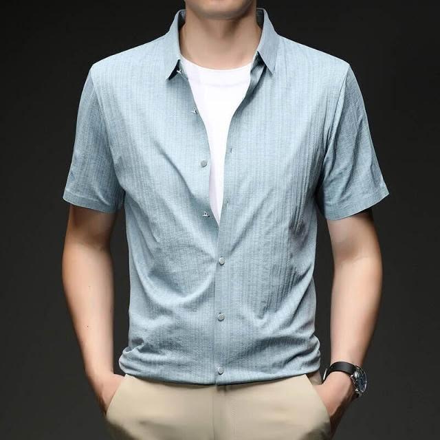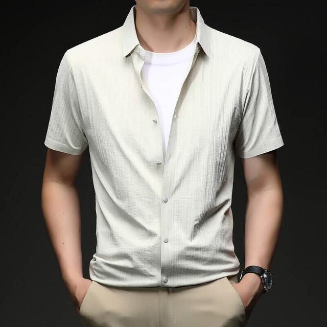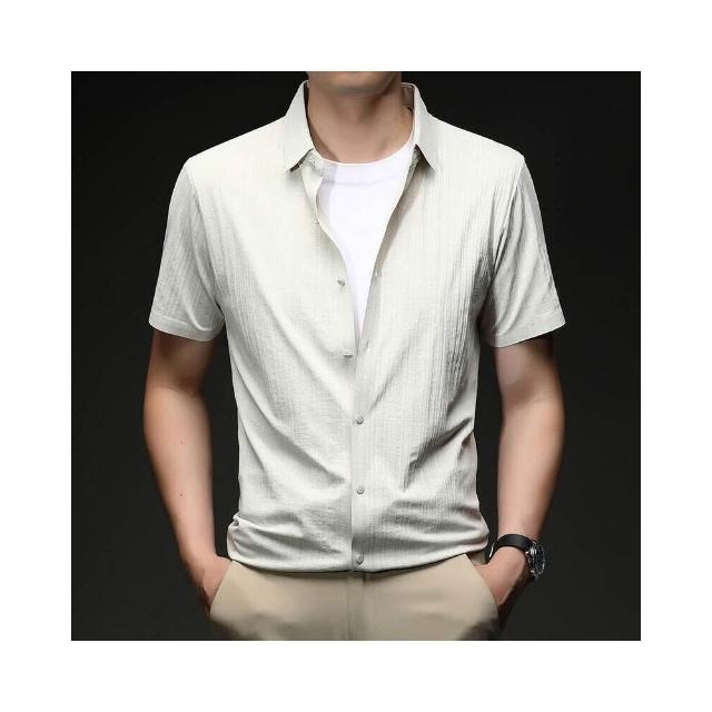 短袖襯衫男夏天冰絲襯衫商務休閒薄款排汗t恤大尺碼寬鬆慵懶風上衣男款襯衫通勤工作翻領上衣百搭襯衫夏天襯衫領上衣涼感男士短袖