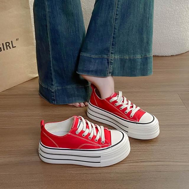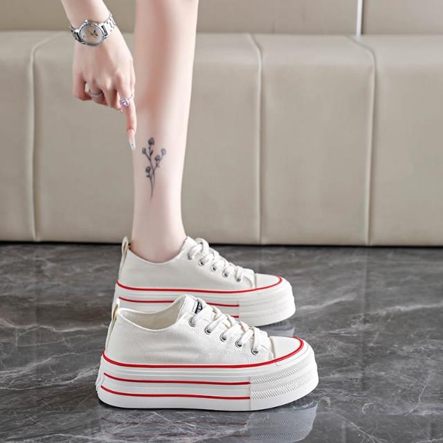增高顯腿長小白鞋女夏季帆布鞋透氣防臭輕量厚底運動鞋白色防滑寬楦休閒鞋久站不累腳耐磨慢跑鞋戶外健走鞋韓國百搭女鞋大尺碼鞋子