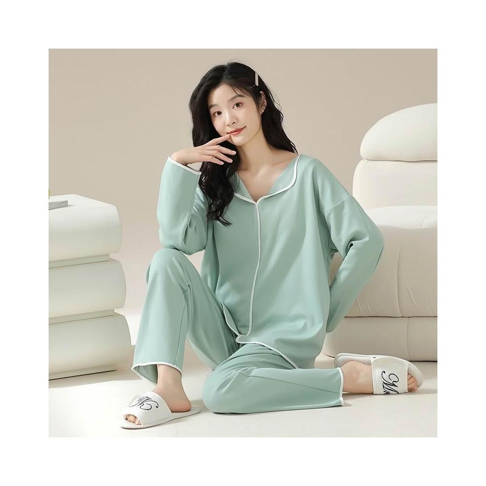 衣森eason 🌱莫代爾有胸墊法式翻領長袖睡衣(女生睡衣/秋冬睡衣/長袖睡衣/莫代爾睡衣/胸墊睡衣/居家服)