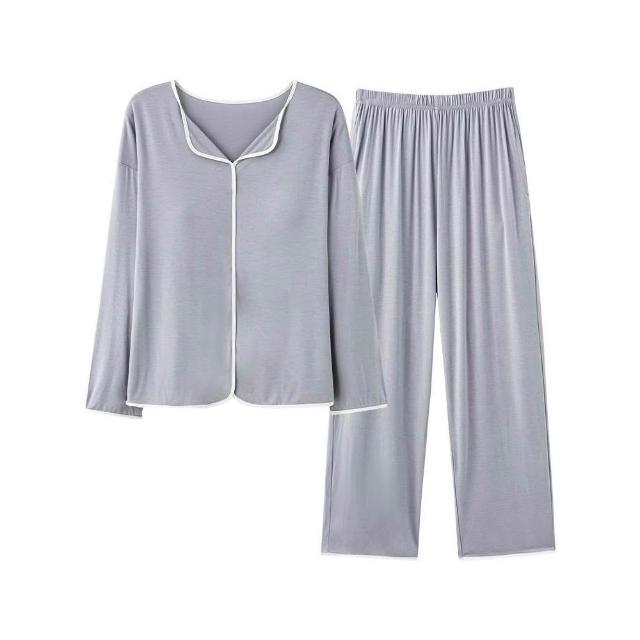 衣森eason 🌱莫代爾有胸墊法式翻領長袖睡衣(女生睡衣/秋冬睡衣/長袖睡衣/莫代爾睡衣/胸墊睡衣/居家服)