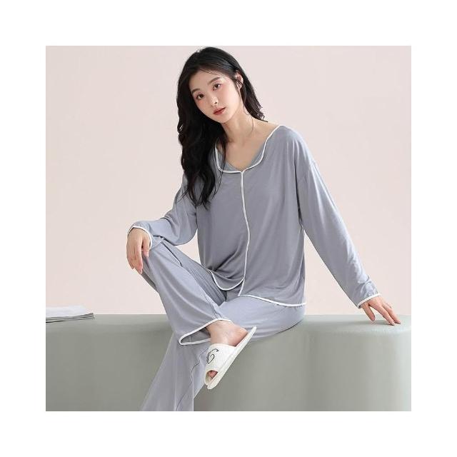 衣森eason 🌱莫代爾有胸墊法式翻領長袖睡衣(女生睡衣/秋冬睡衣/長袖睡衣/莫代爾睡衣/胸墊睡衣/居家服)