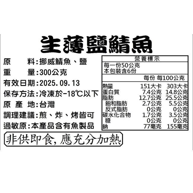 華得水產薄鹽挪威鯖魚片1包(3片約300g/片)