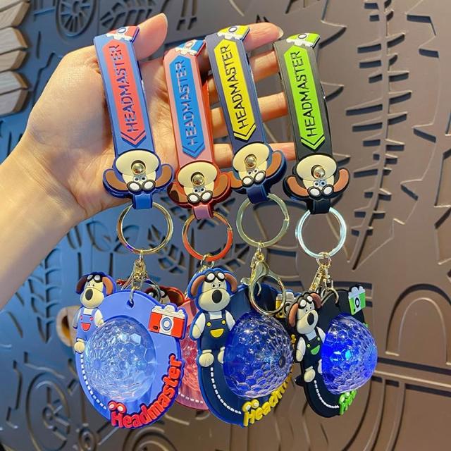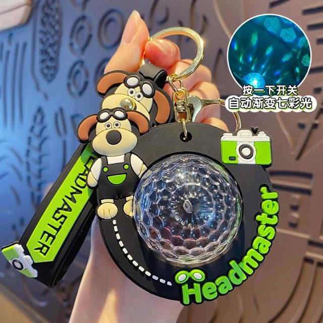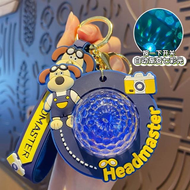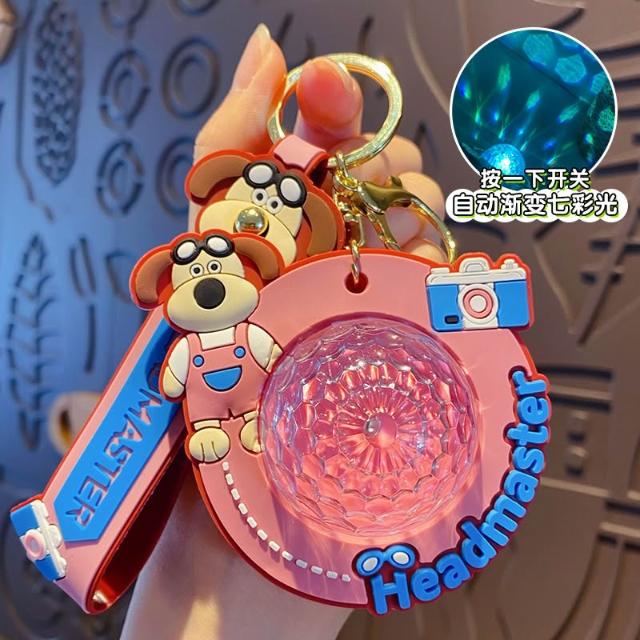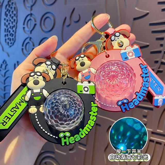 眼鏡牛仔狗七彩氛圍燈扣 喜慶燈光鑰匙圈 掛件掛飾吊飾