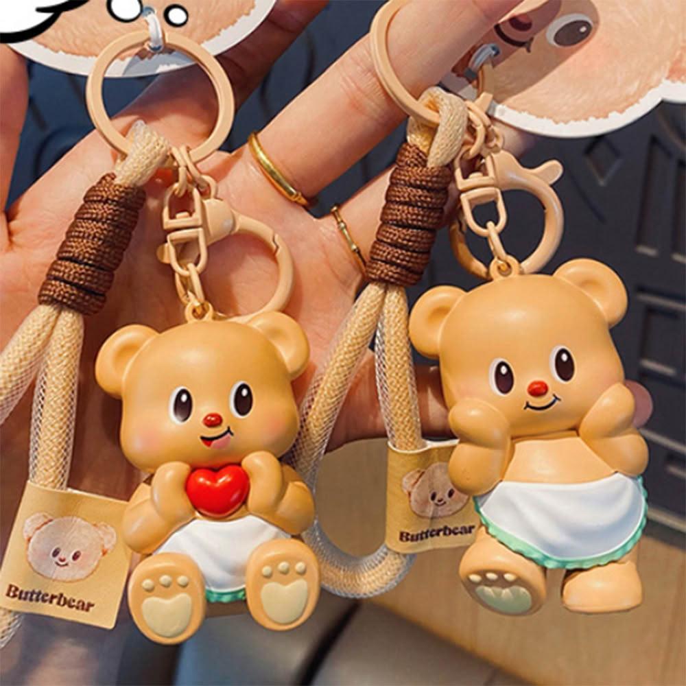 奶油小熊鑰匙圈 可愛萌系公仔鑰匙鏈 書包掛件 吊飾