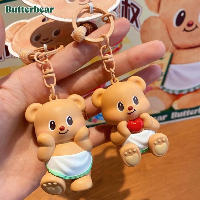 奶油小熊鑰匙圈 可愛萌系公仔鑰匙鏈 書包掛件 吊飾