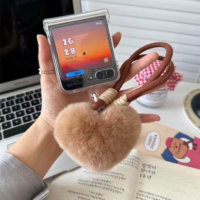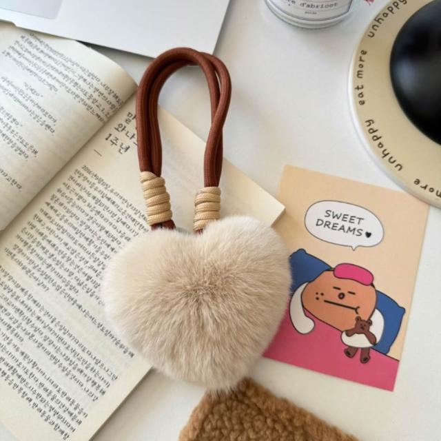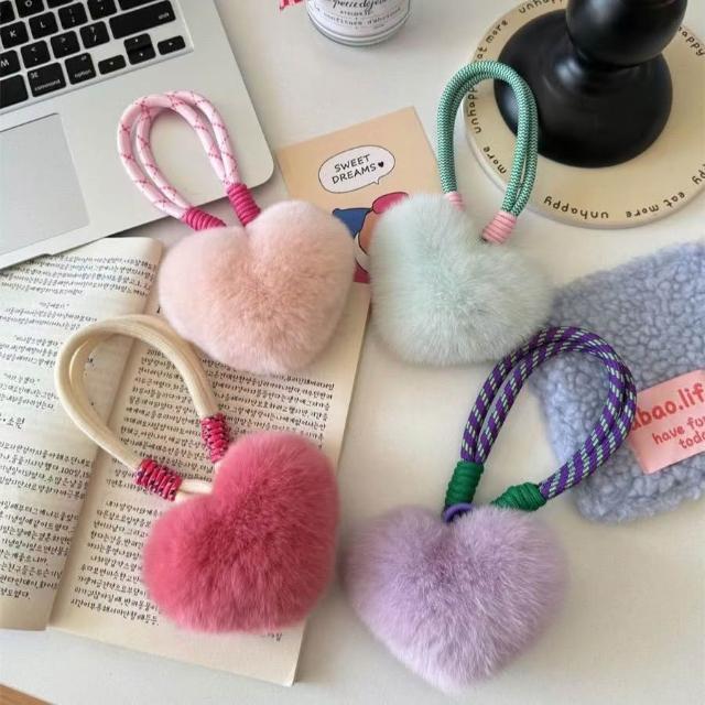 少女心獺兔毛愛心手機掛繩 毛絨絨桃心掛飾 包掛件 汽車鑰匙扣 鑰匙圈