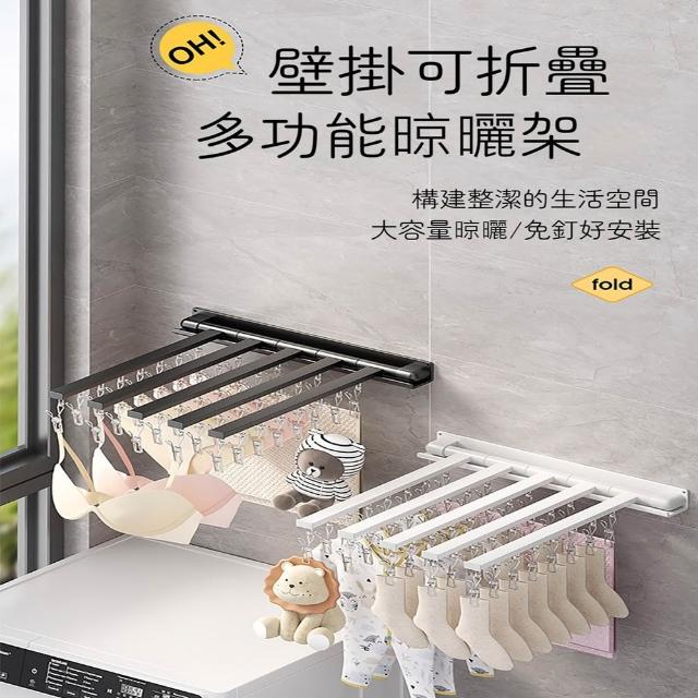 壁掛多功能可摺疊晾衣架|5桿40夾|直桿/橫桿款可選!