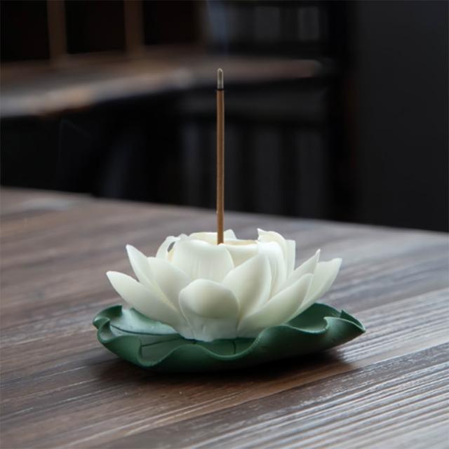 陶瓷蓮花線香擺件 白色蓮花荷葉香插 香薰插座 蓮花造型香座