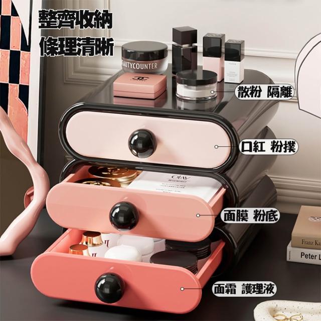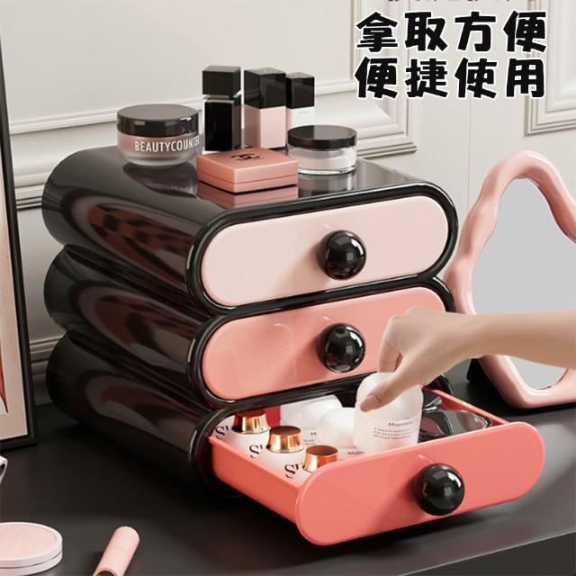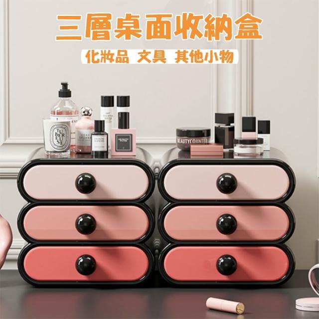 三層抽屜收納盒 桌面收納神器 文具化妝品整理盒 多功能置物盒