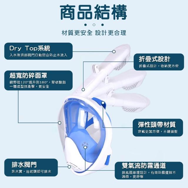 浮潛面罩 全罩式潛水面鏡 成人兒童通用 防霧防漏呼吸管 潛水面罩