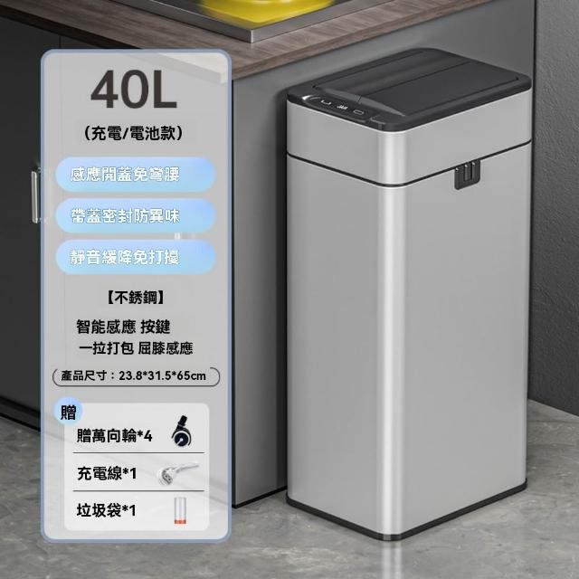 不鏽鋼雙開感應垃圾桶 智能垃圾桶 自動打包垃圾桶(15L20L30L40L大容量/揮手感應/屈膝感應/多場景適用)