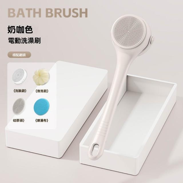 電動洗澡刷 多功能全自動沐浴刷 沐浴搓澡洗臉(洗臉 去角質 按摩搓背 單柄/雙柄 一機六頭)