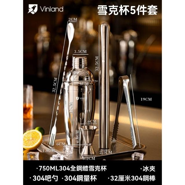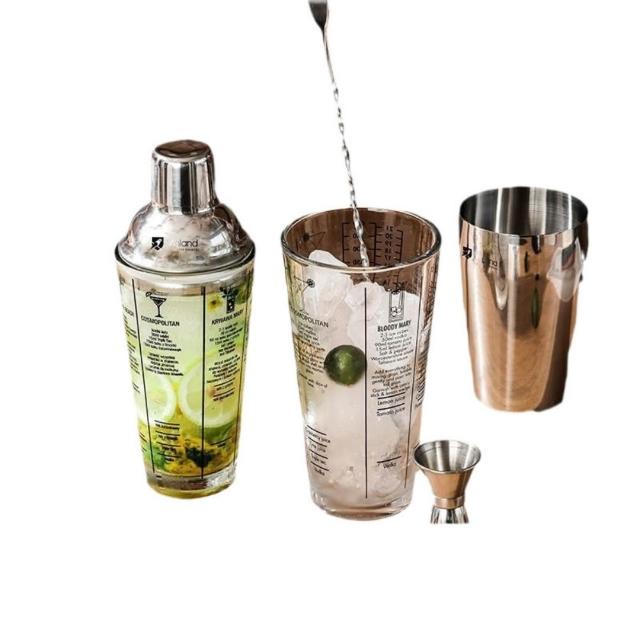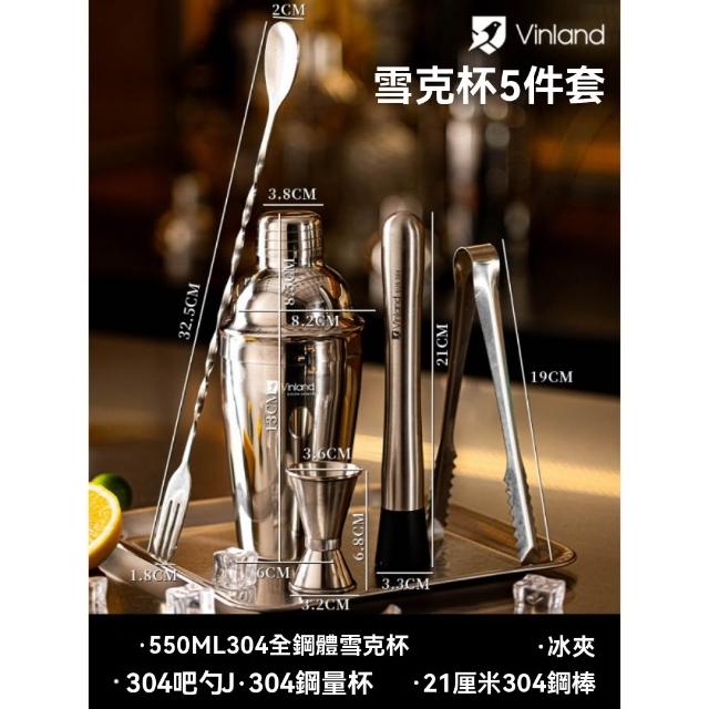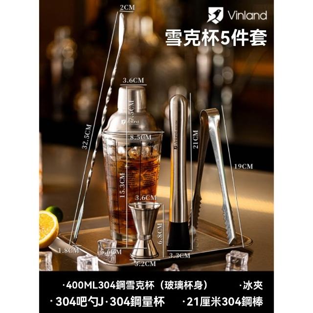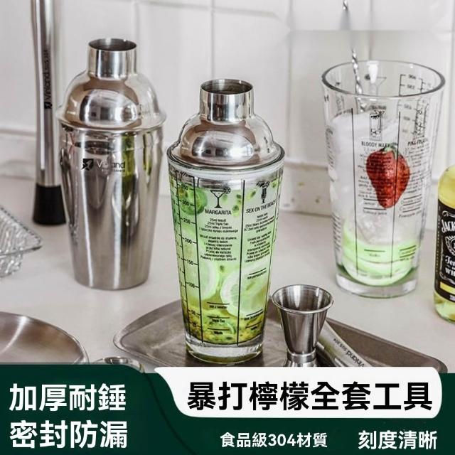 雪克杯套組 调酒器套装 304不鏽鋼雪克杯 玻璃雪克杯 調酒配件 5件套組