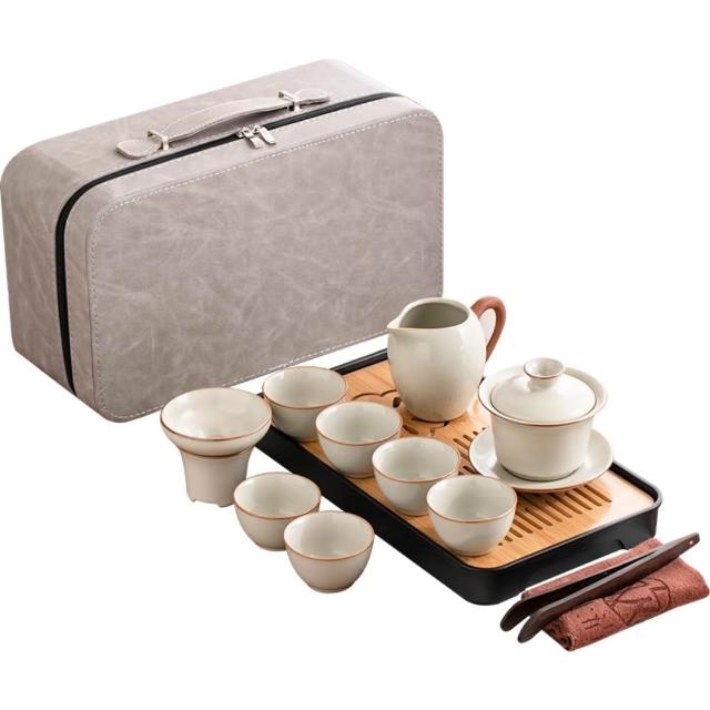 旅行茶具套裝 家用功夫茶具 戶外便攜式喝茶 附茶盤(蓋碗茶杯茶壺/旅行泡茶/戶外泡茶/交換禮物)