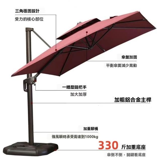 戶外遮陽傘 加粗主桿庭院傘 室外別墅露臺花園大型羅馬傘(2.2/2.5/3.0米 附水箱底座 多顏色可選)