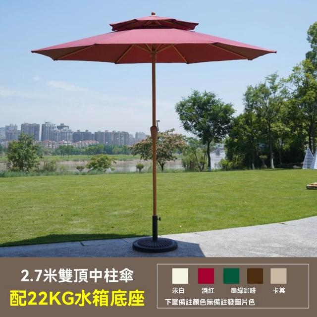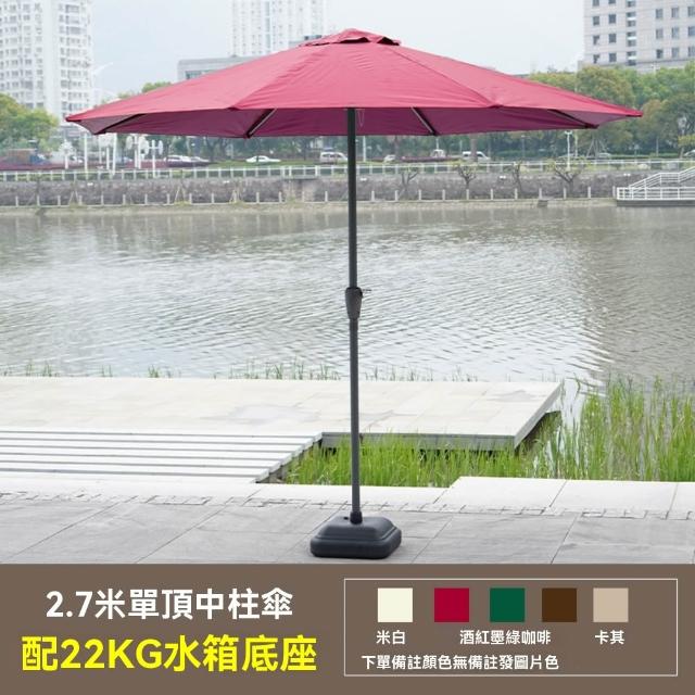 戶外遮陽傘 防曬休閑太陽傘 庭院傘 中柱傘 陽臺室外露營傘 2.7米(附註水底座/多色可選/抗UV不褪色)