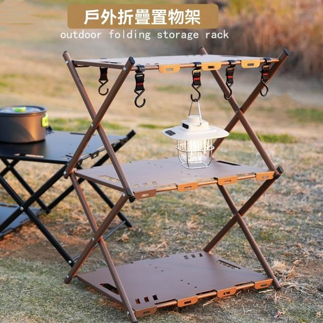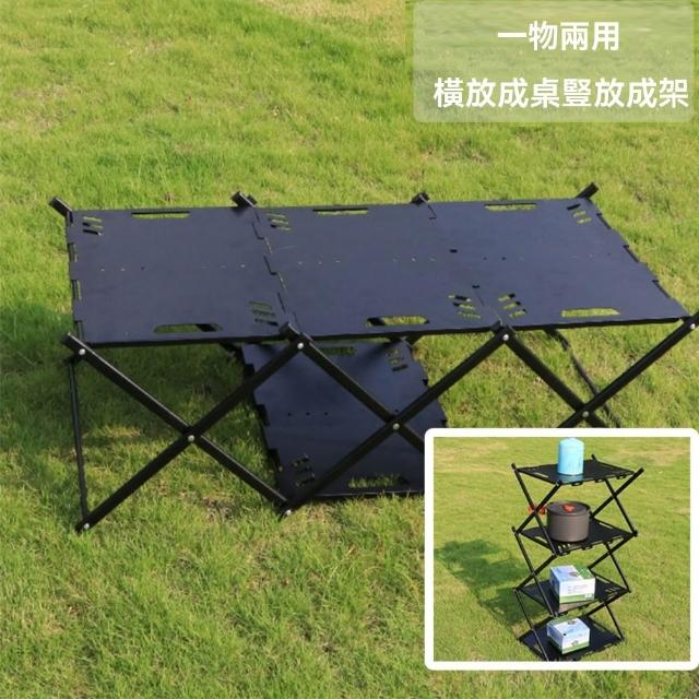 戶外露營便攜折疊置物架 戶外桌 橫豎兩用 碳鋼拼裝露營桌 燒烤野炊架