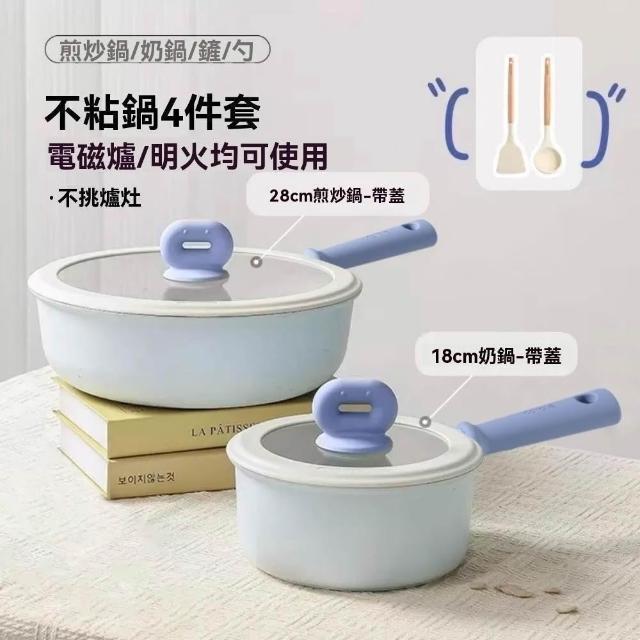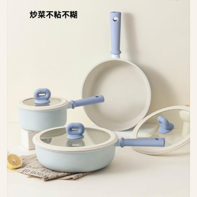 Carote卡羅特 鍋具套裝 不粘鍋全套 家用廚房廚具7件套(炒鍋/奶鍋/輔食鍋/平底鍋/湯鍋/煎鍋)